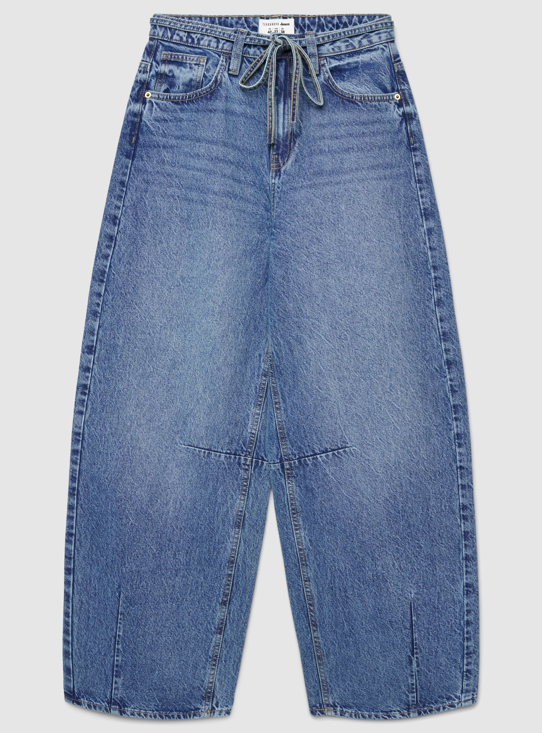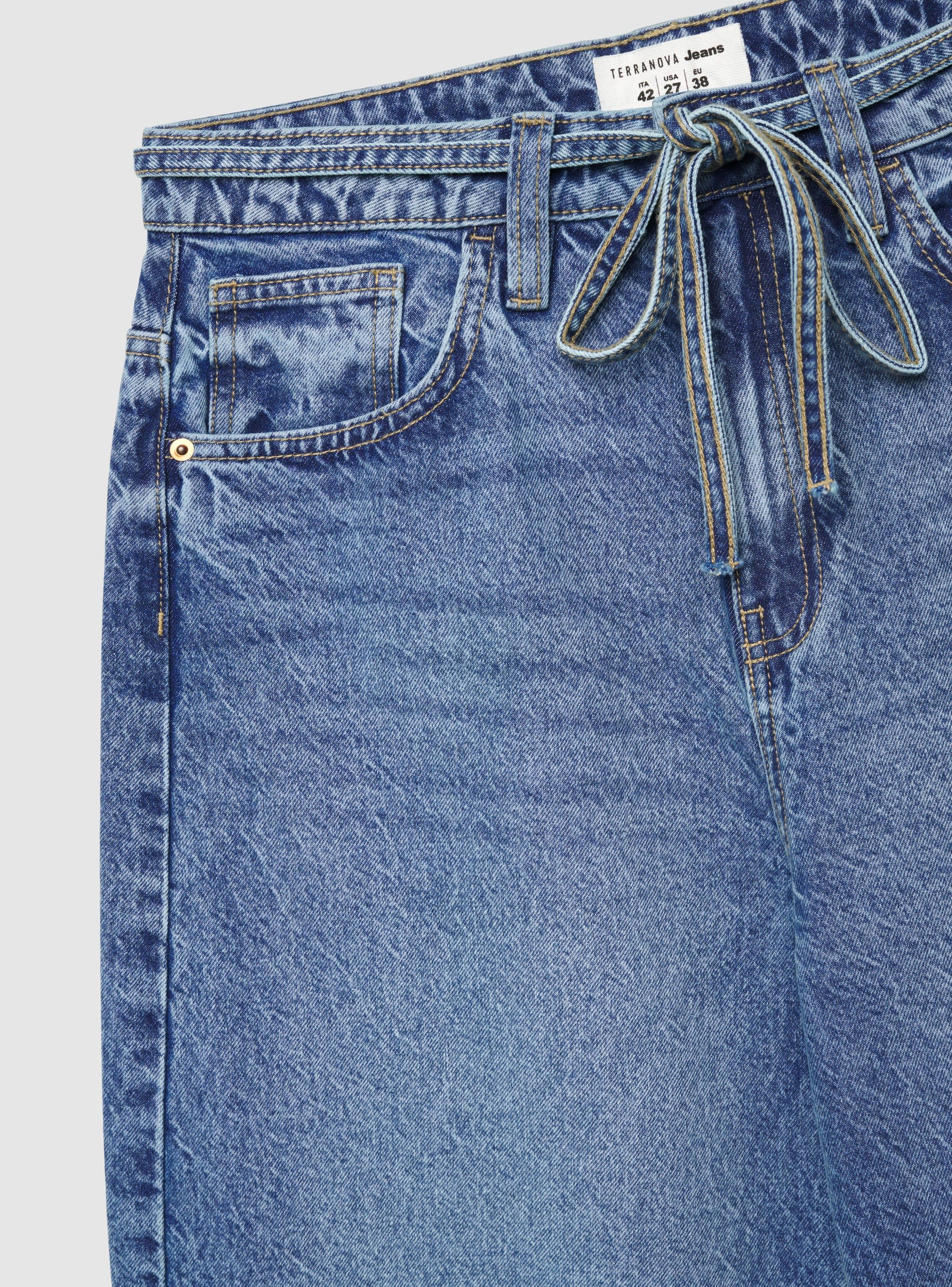 Jeans barrel con coulisse - Blu denim medio
