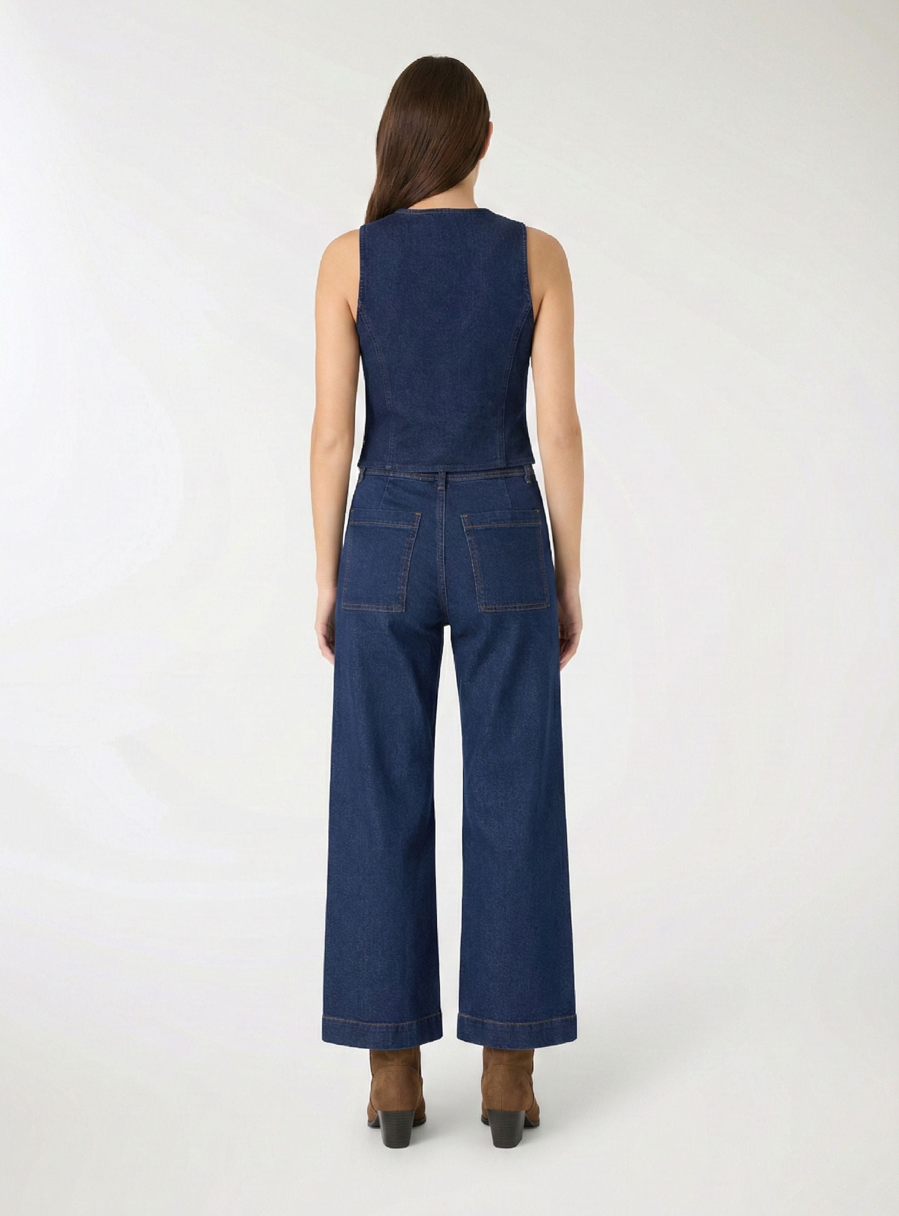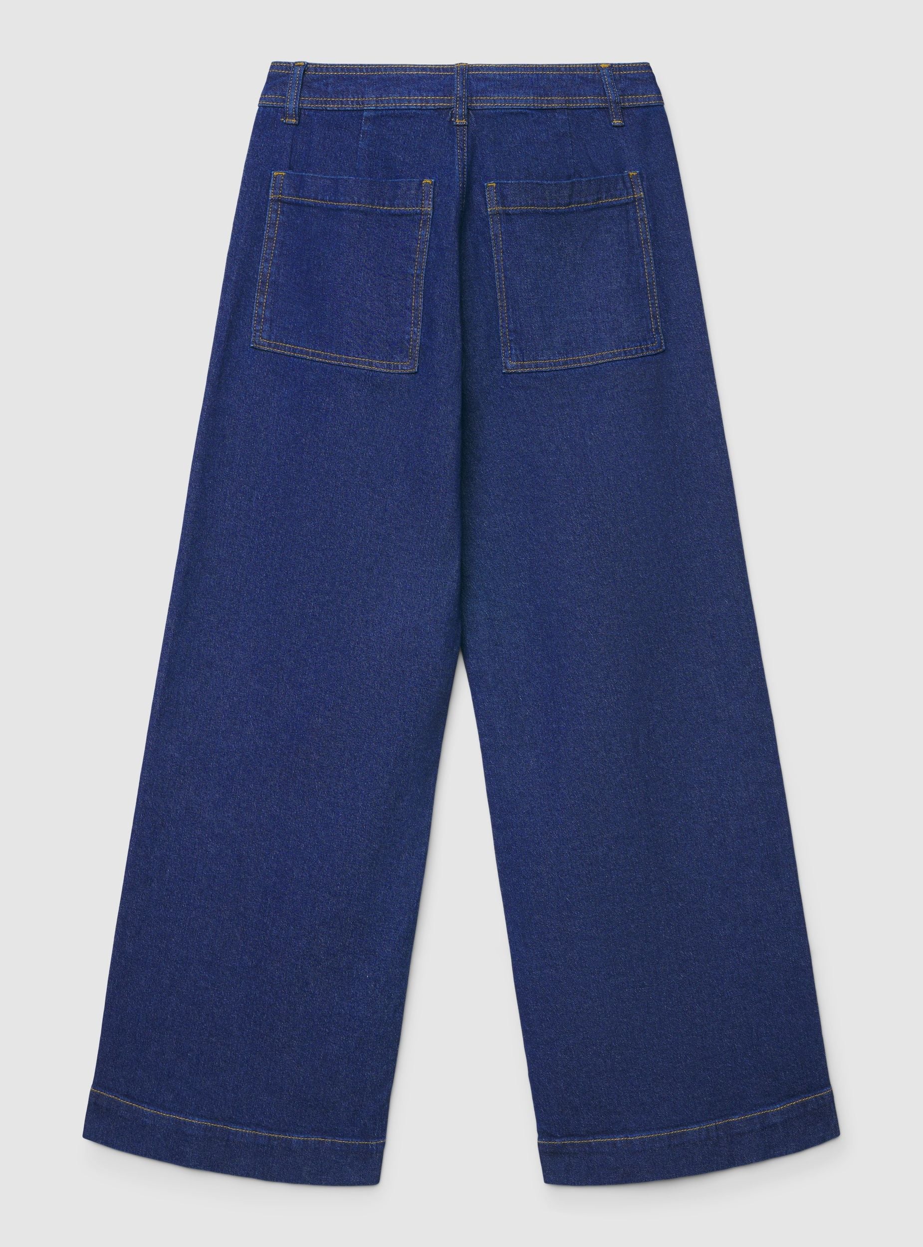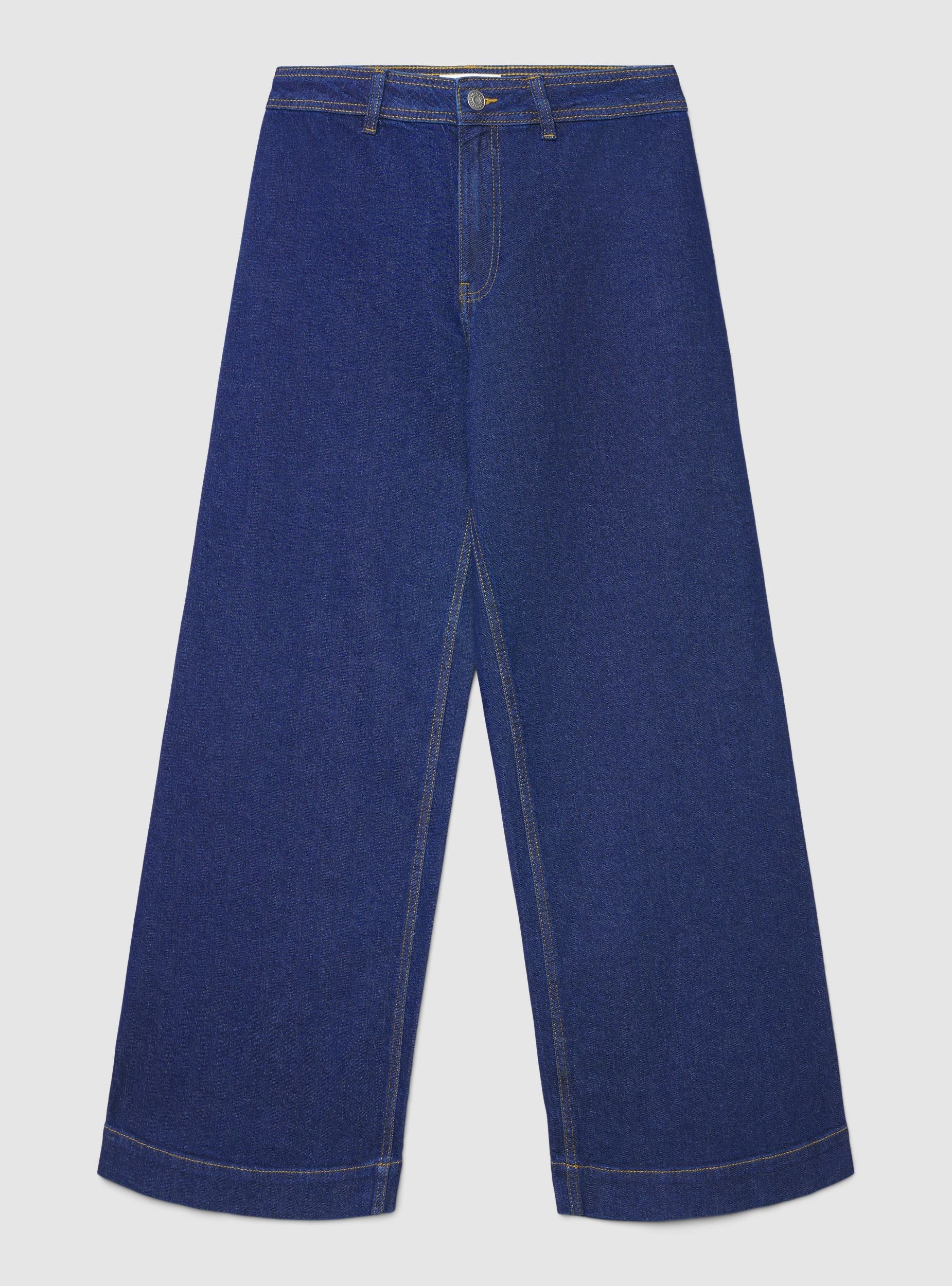Jeans da donna a tinta unita dal taglio wide leg e lunghezza crop, ideali per look urban di tutti i giorni. Chiusura con bottone e zip, passanti in vita e cuciture a contrasto. Modello a cinque tasche con tasche posteriori applicate. Perfetti con maglietta e sneakers oppure con camicia e stivaletti per un outfit più curato.Dettagli