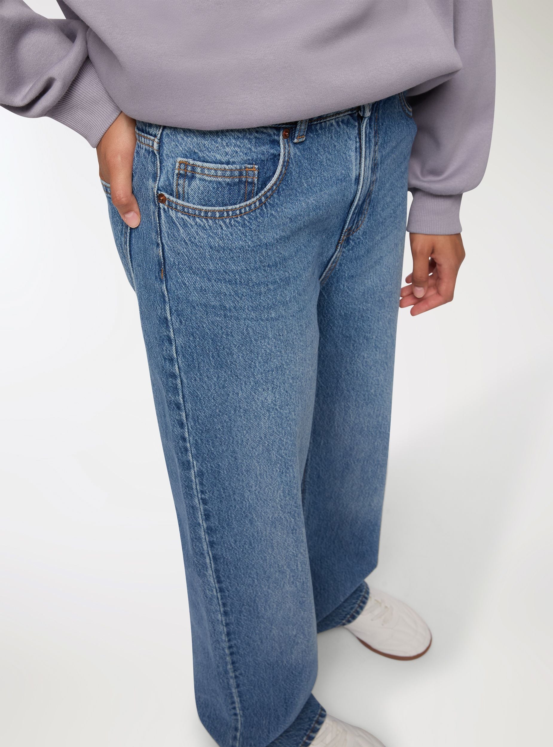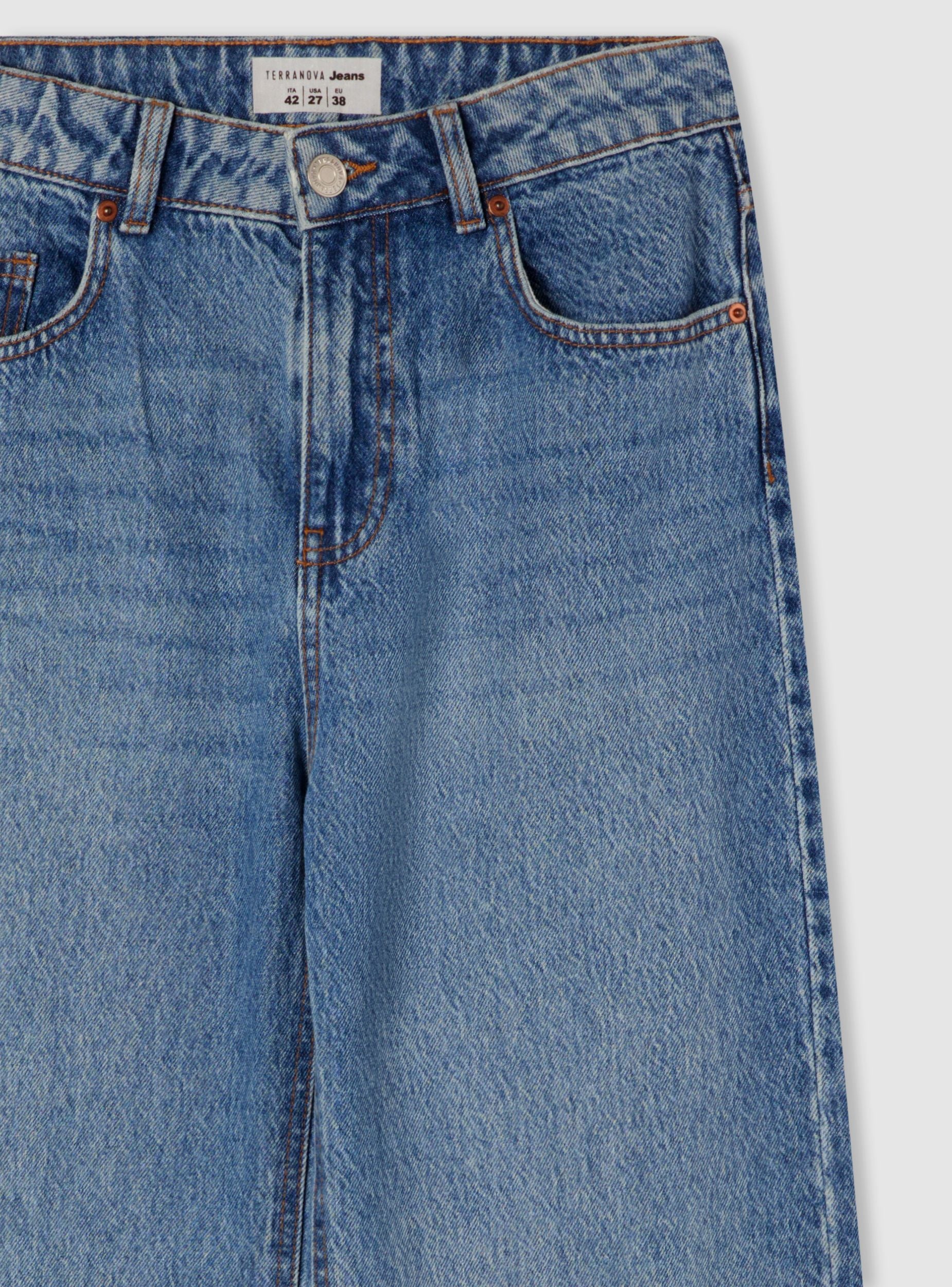 Jeans da donna dal taglio wide leg, ideali per un look casual e versatile. La vestibilità ampia assicura comfort durante tutta la giornata, perfetti da abbinare sia a t-shirt che a camicie per outfit moderni. Presentano chiusura con bottone e zip, passanti per cintura e cinque tasche. Lavaggio denim medio. Adatti a molteplici occasioni.Dettagli
