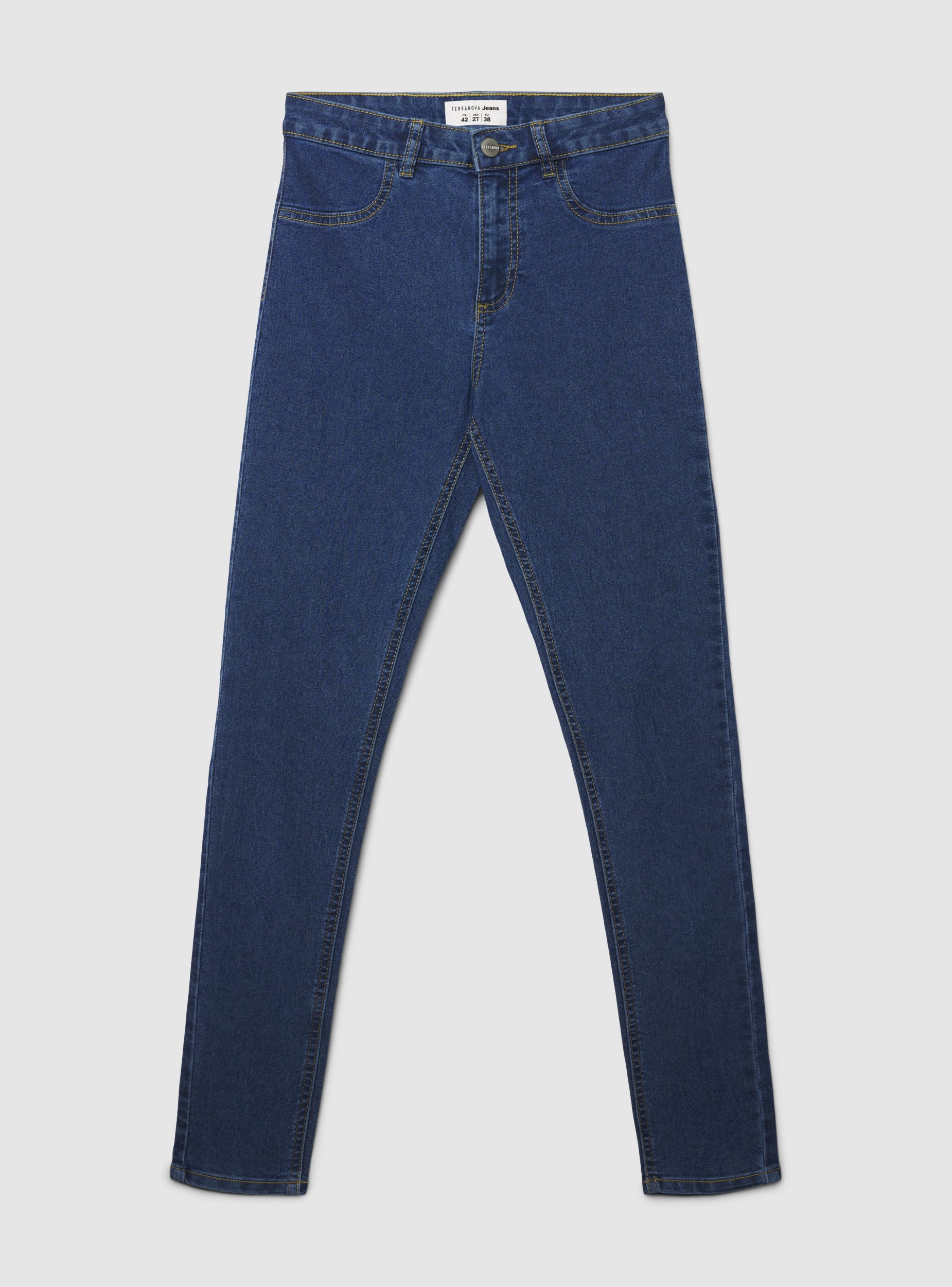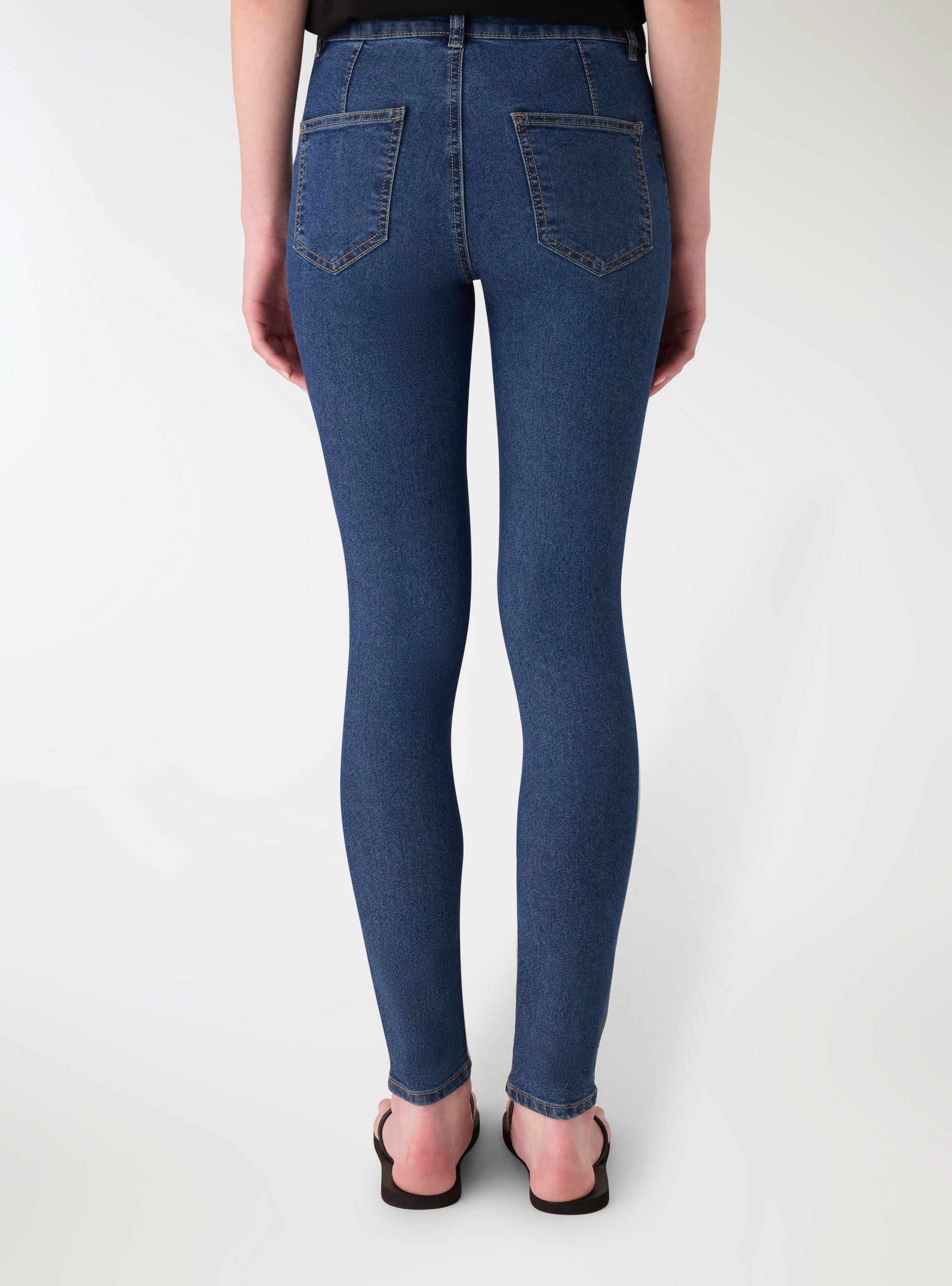 Jeggings da donna in tinta unita, pensati per tutti i giorni. Modello skinny, con passanti per cintura e chiusura con bottone e zip. Presenta tasche anteriori stile jeans e tasche applicate sul retro. Versatili con maglietta e sneakers per un look casual, oppure con camicia e stivaletti per occasioni informali.Dettagli