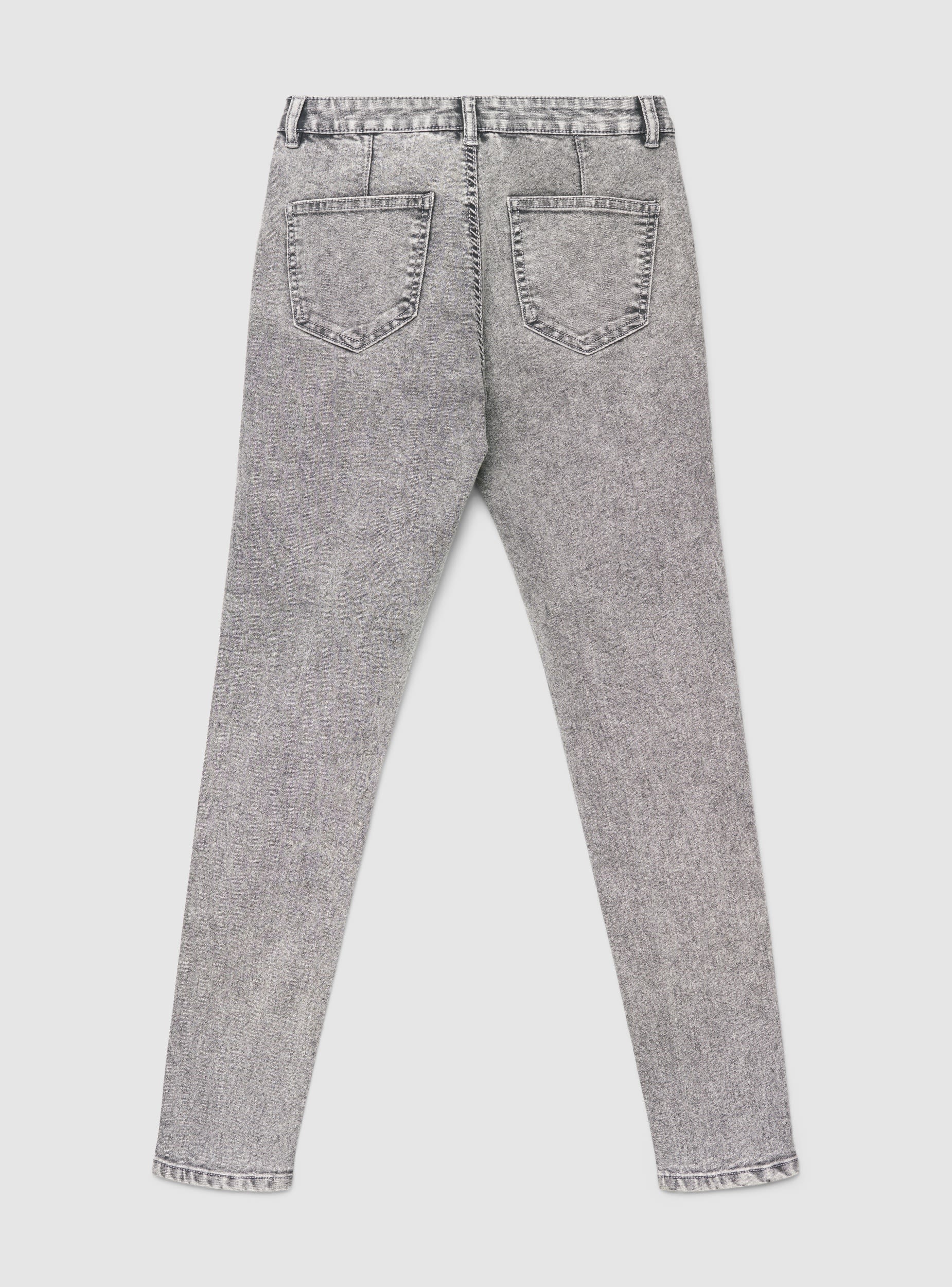 Jeggings da donna a tinta unita con lavaggio effetto used. Modello aderente con vita media, chiusura con bottone e zip e passanti per cintura. Tasche laterali. Ideali per il tempo libero e look urban, si abbinano a maglietta e sneakers o a camicia e stivaletti per un outfit più curato.Dettagli