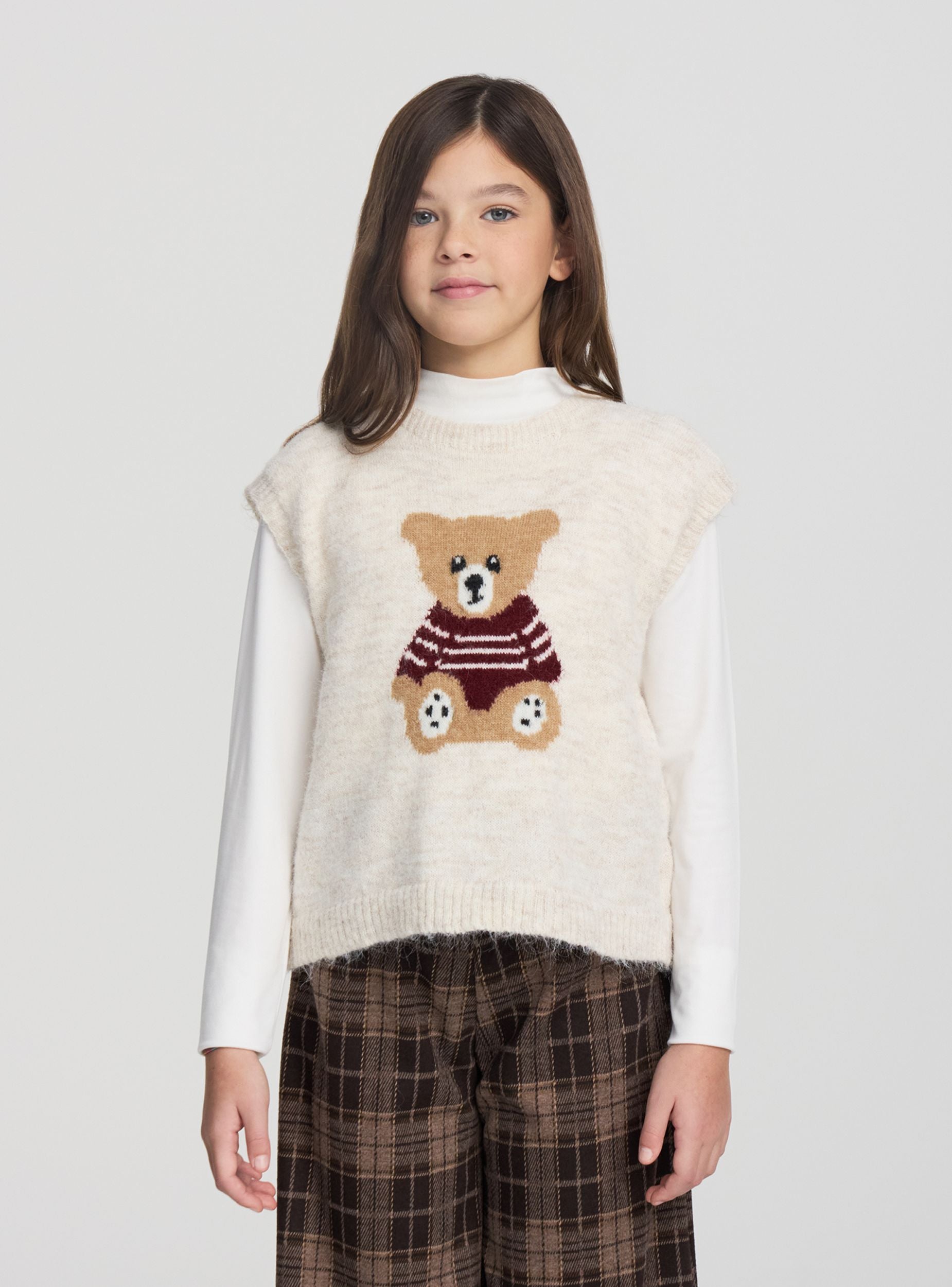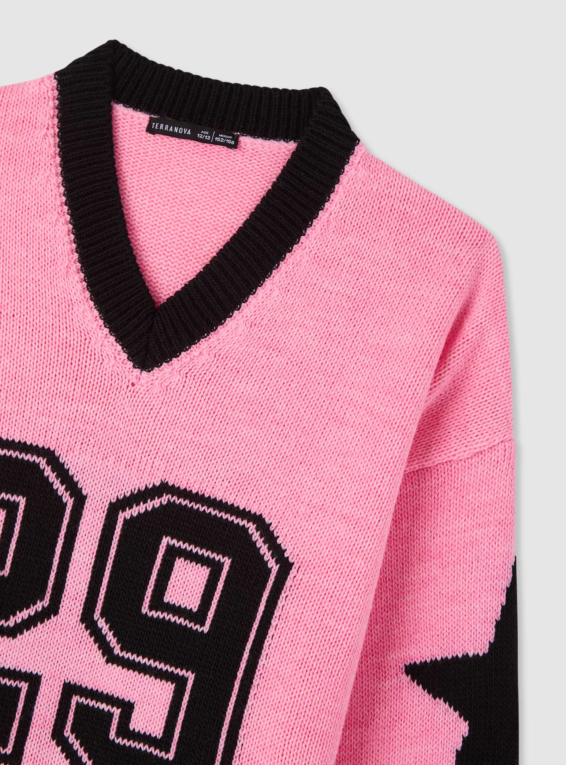 Maglia da bambina a tinta unita con scollo a V e motivo college. Vestibilità regular con bordi a coste su collo, fondo e polsini per una tenuta confortevole. Perfetta per la scuola o il tempo libero, si abbina a jeans, pantaloncini o leggings per un look urbano e trendy.Dettagli