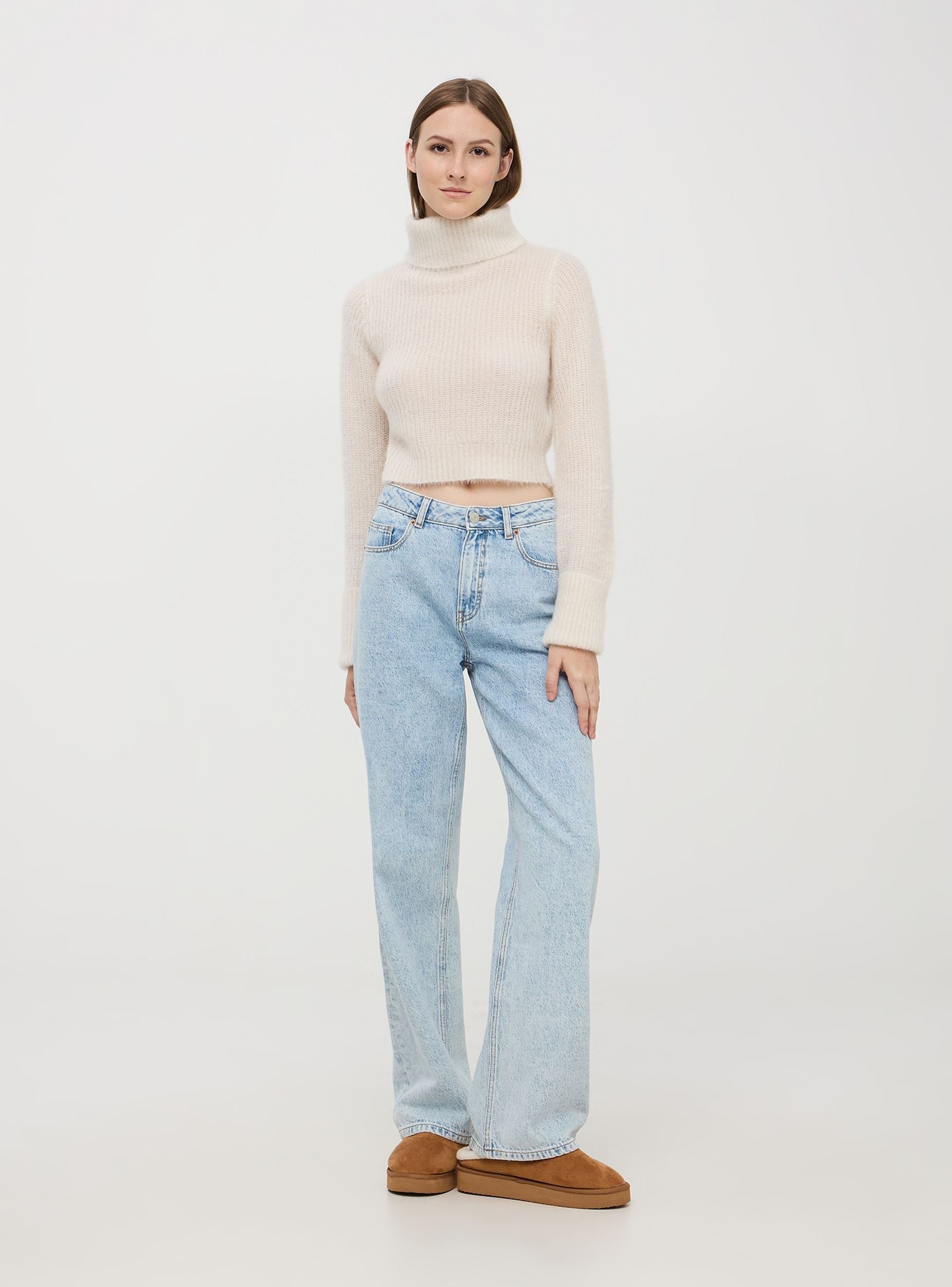 Maglia da donna con collo alto, realizzata in tessuto a tinta unita con dettagli luccicante. Un capo must-have da avere nell'armadio. Vestibilità crop.Dettagli