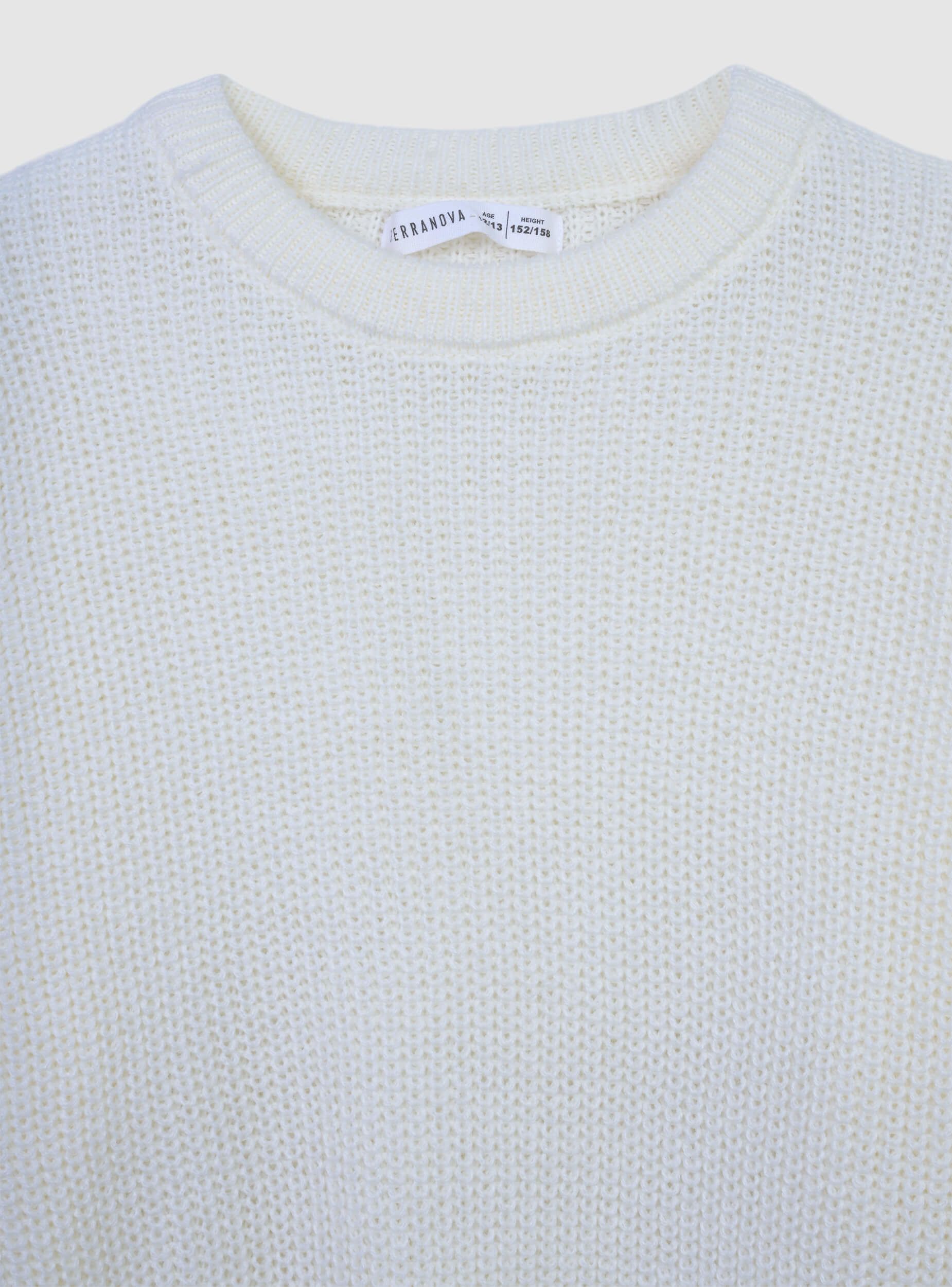 Maglia da bambina ideale per look casual e versatili. Il modello presenta una lavorazione a maglia, girocollo e maniche lunghe con polsini a costine. La vestibilità regular la rende perfetta per essere indossata sia a scuola che nel tempo libero, abbinata a jeans o gonne. Il design semplice a tinta unita valorizza ogni outfit, offrendo comfort e praticità in ogni occasione.Dettagli