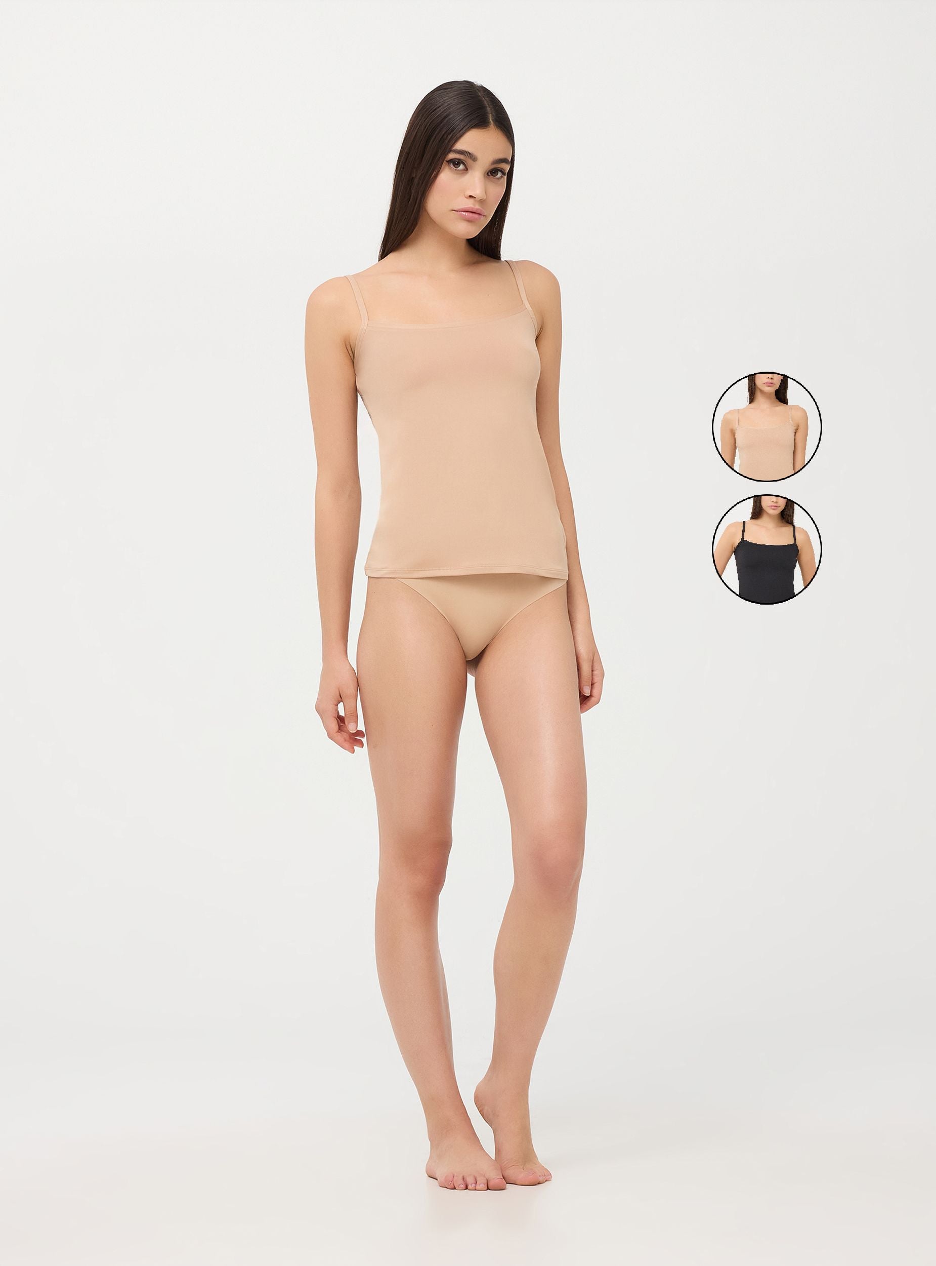 Confezione composta da 2 canottiere da donna, con spalline sottili e scollo rotondo. Perfette per essere indossate sia come strato di base che da sole. Versatile e confortevole, offre calore e comodità durante la stagione fredda.Dettagli