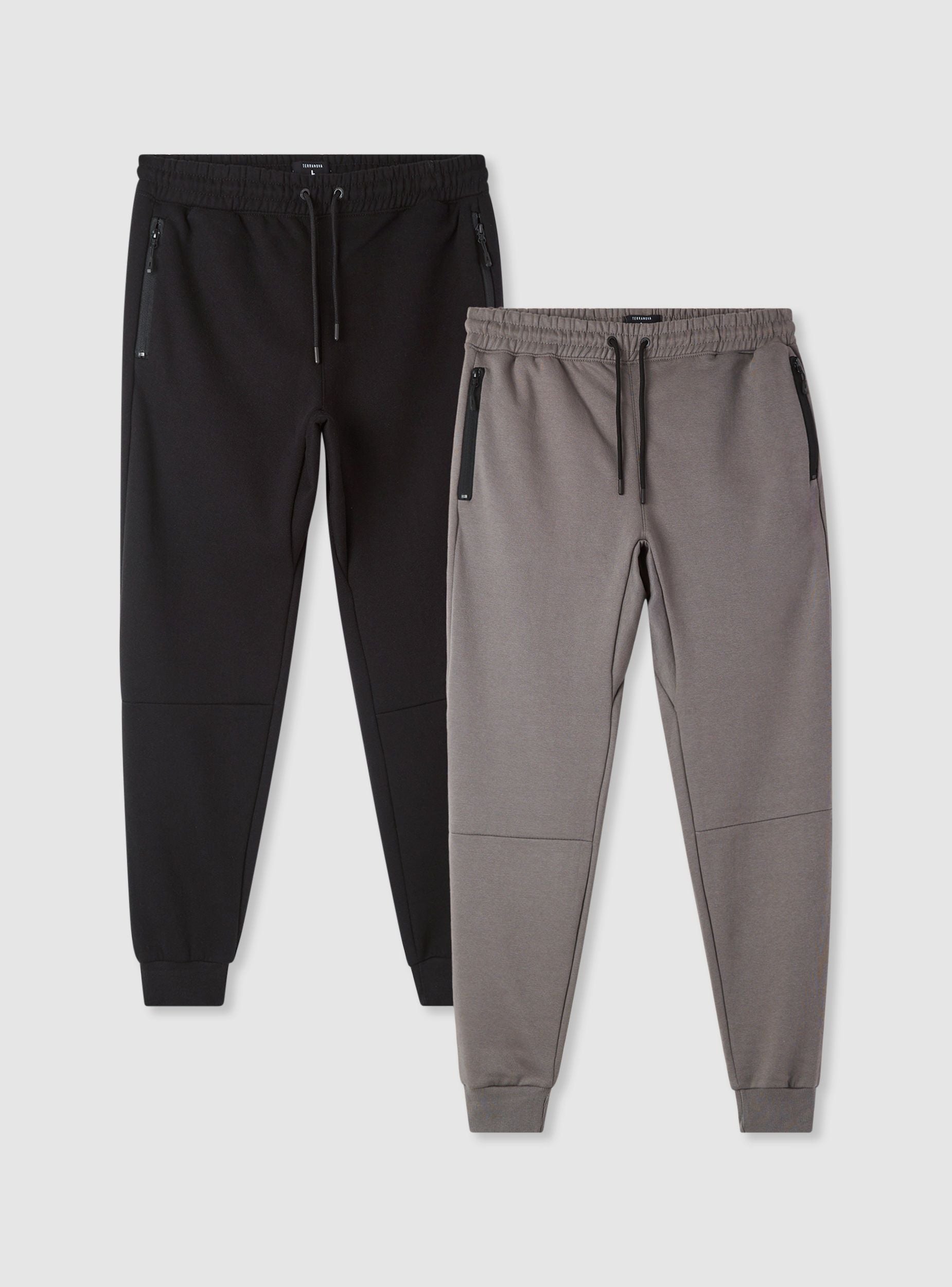 Confezione composta da 2 paia di pantaloni tuta da uomo in tinta unita, ideali per il tempo libero e per l’allenamento leggero. Vita elasticizzata con coulisse per una regolazione precisa, fondo gamba con polsino e taglio regular. Tasche laterali con zip per custodire piccoli oggetti in sicurezza. Facili da abbinare a maglietta, felpa con cappuccio o sneaker per un look urbano e confortevole.Dettagli
