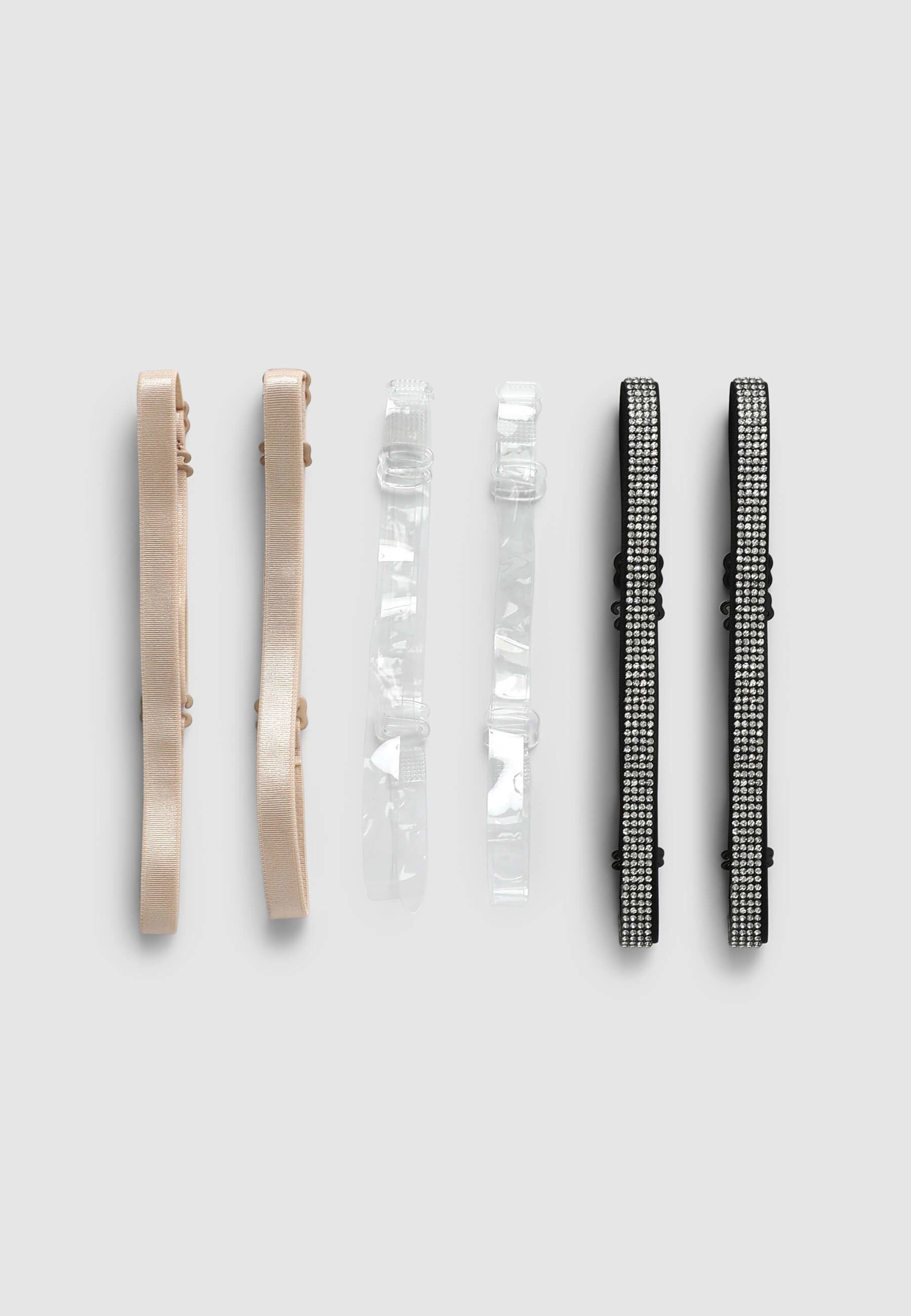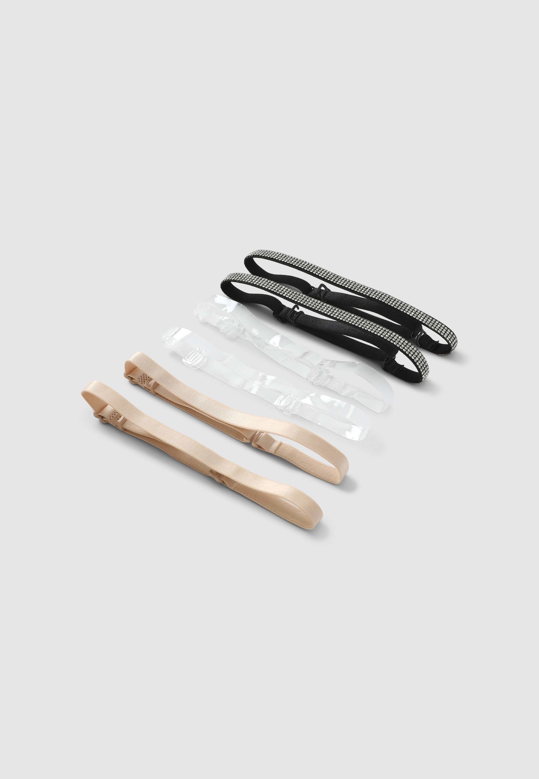 Confezione composta da 3 paia di spalline per reggiseno da donna, ideali per adattarsi a diverse occasioni d'uso. Il pack contiene spalline regolabili per una vestibilità ottimale: trasparenti per un effetto discreto, color carne per un look naturale e con strass per aggiungere un tocco elegante. Perfette per completare il tuo outfit in modo funzionale e raffinato.Dettagli