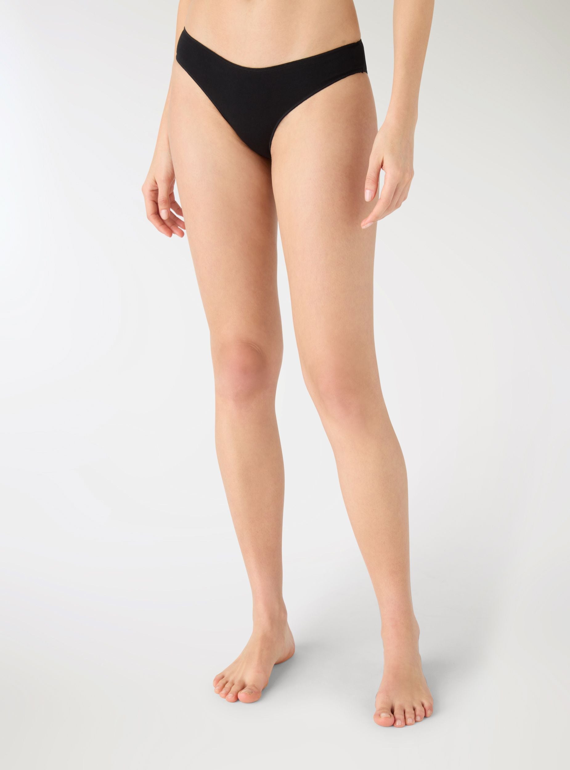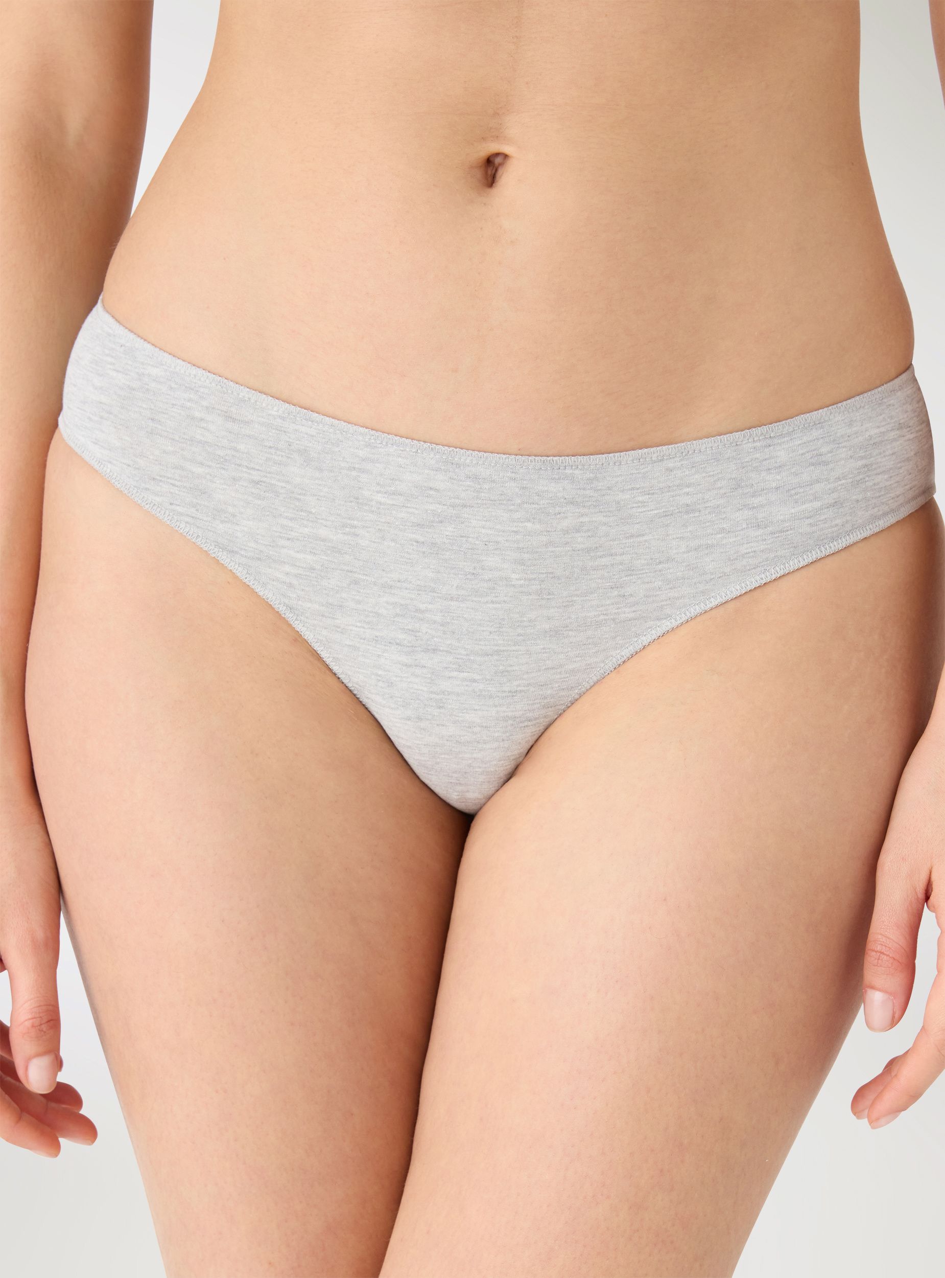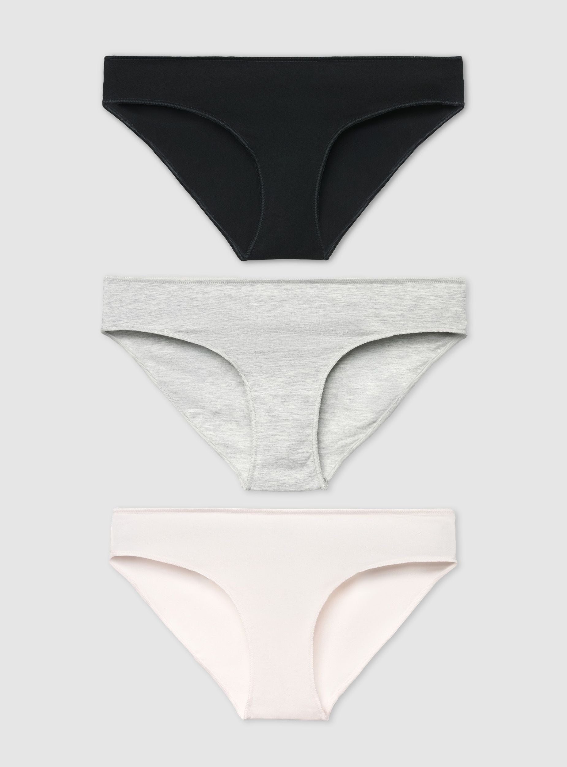Slip da donna in tinta unita, in confezione da tre. Modello essenziale con vita media e sgambatura morbida, pensato per un comfort quotidiano, ideale sotto ogni outfit. Linee pulite, perfetti da abbinare a reggiseni coordinati o a completi intimi minimal.Dettagli