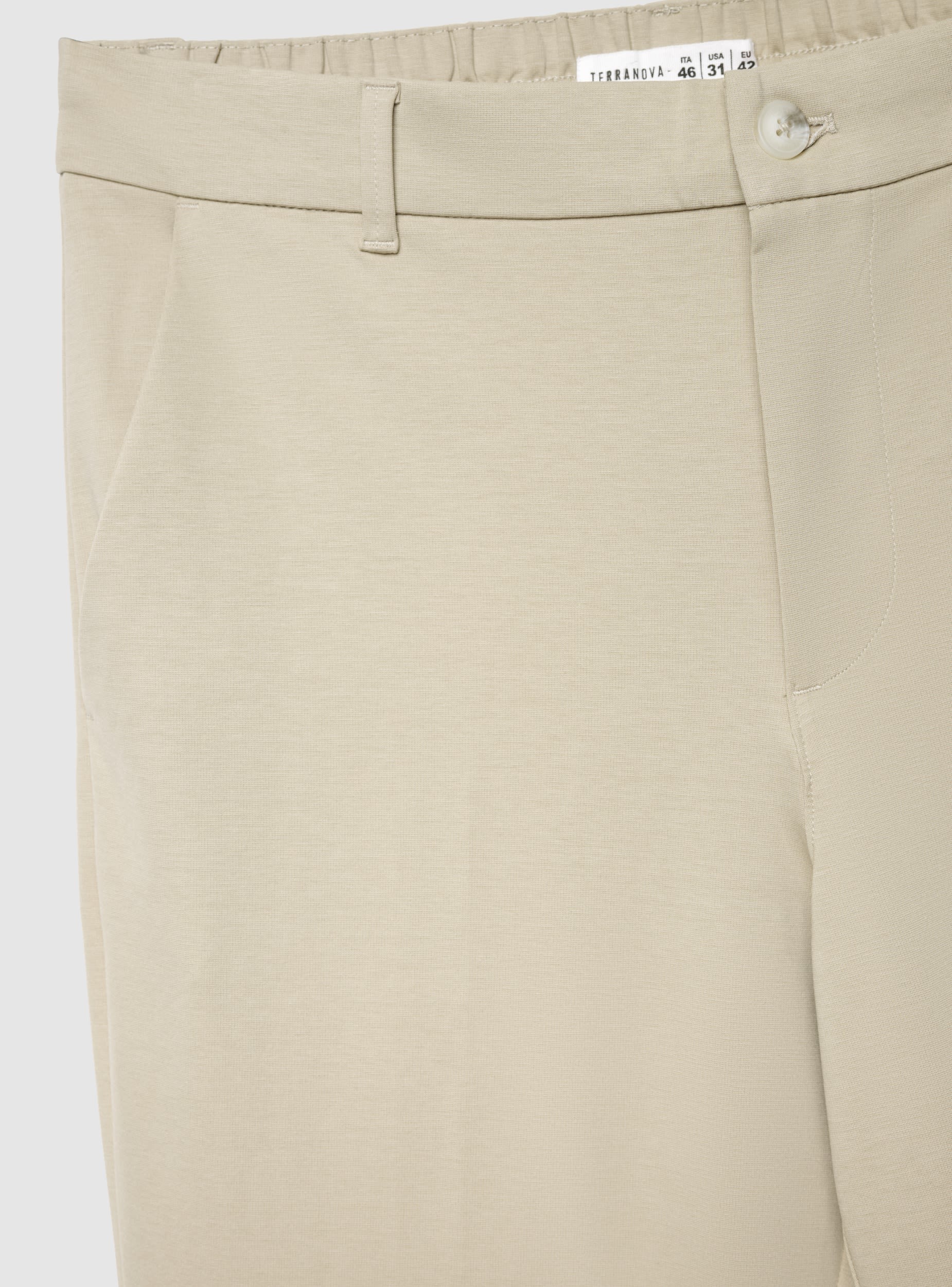 Pantaloni da uomo a tinta unita dallo stile chino, ideali per look da ufficio o tempo libero. Modello lungo con vita con elastico sul retro e passanti per cintura, chiusura con bottone e zip. Presentano tasche laterali e tasche posteriori a filetto con bottone. Linea asciutta e gamba dritta, perfetti con camicia o maglione.Dettagli