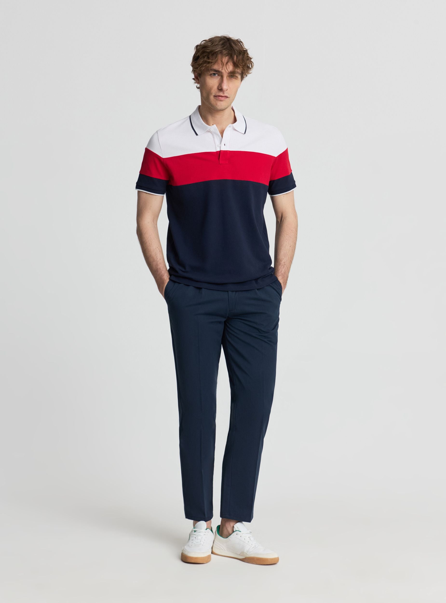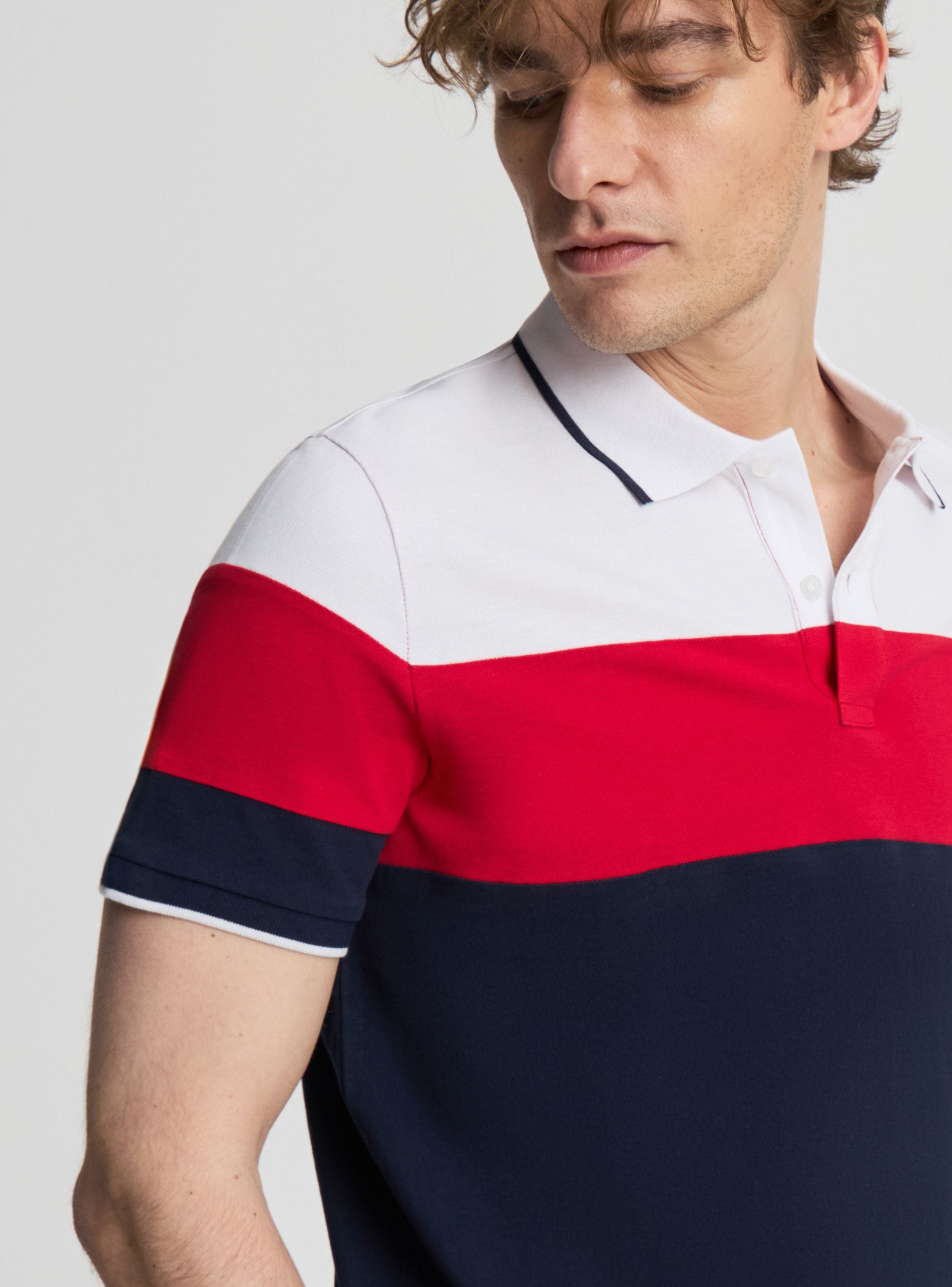 Maglietta polo da uomo con fantasia a blocchi di colore, perfetta per look casual e urban. Colletto a polo, apertura frontale con bottoni e maniche corte. Vestibilità regular, ideale con jeans o chino per il tempo libero. Design a righe orizzontali a contrasto che dona carattere al tuo outfit. Facile da indossare sotto una giacca leggera o con sneakers.Dettagli