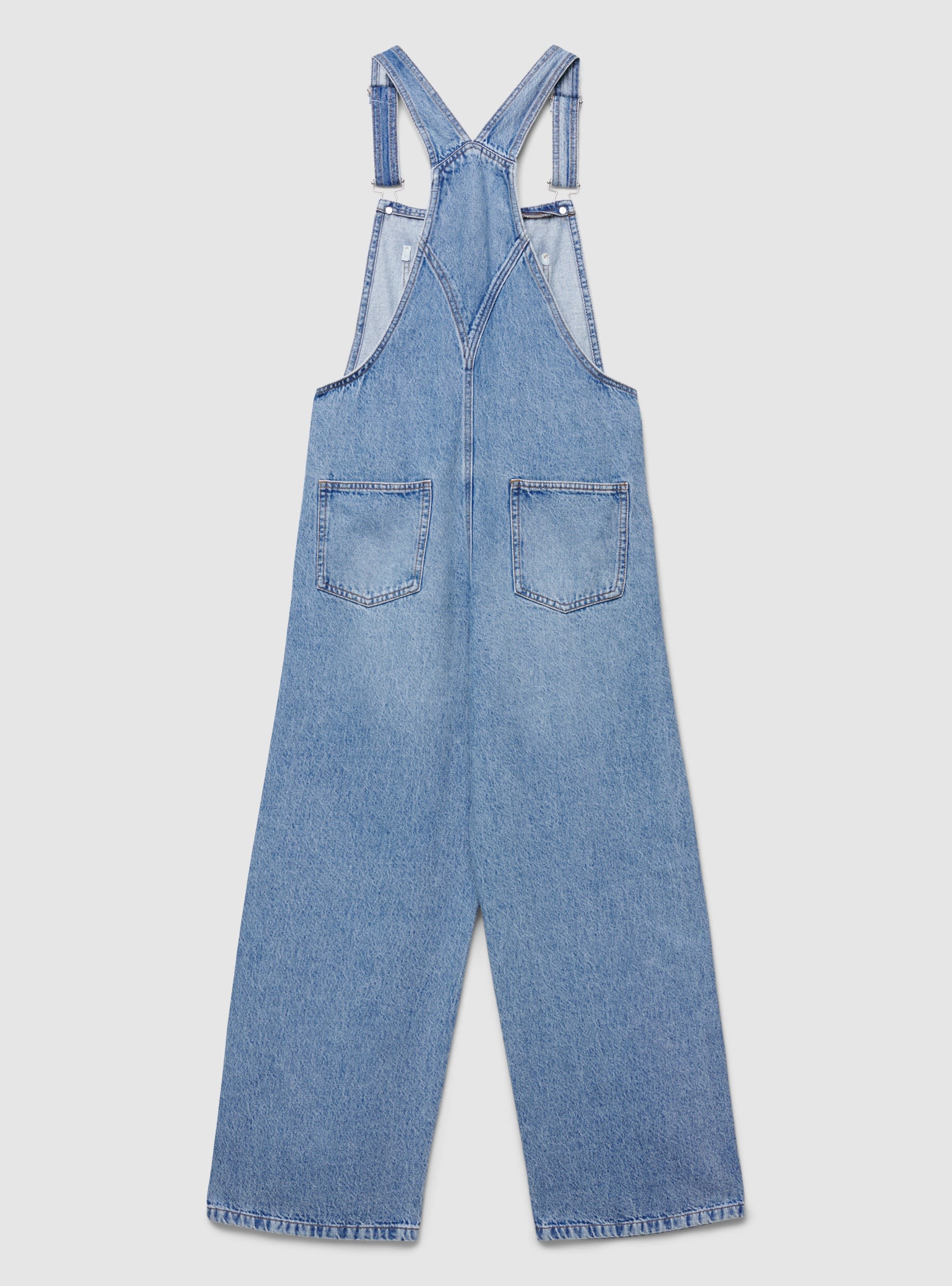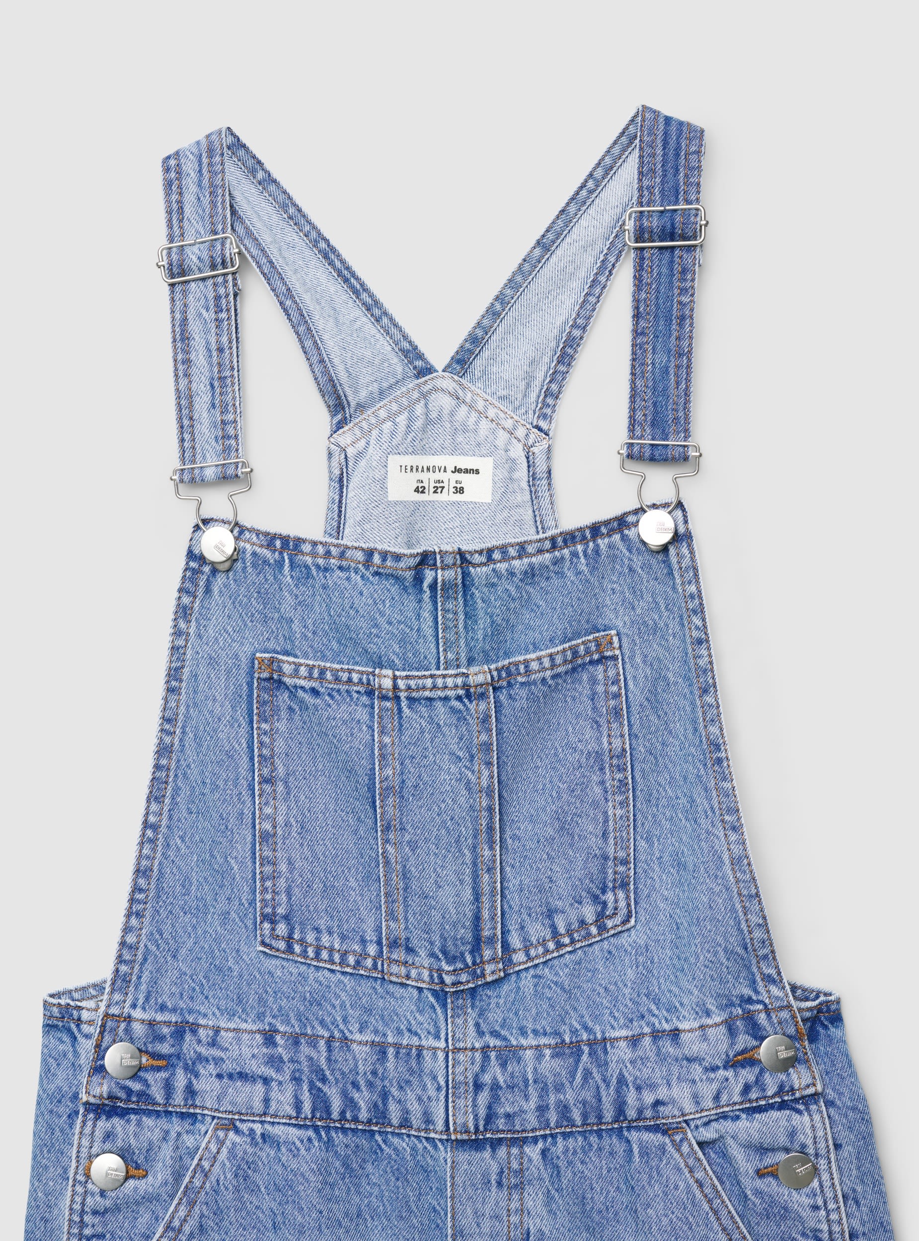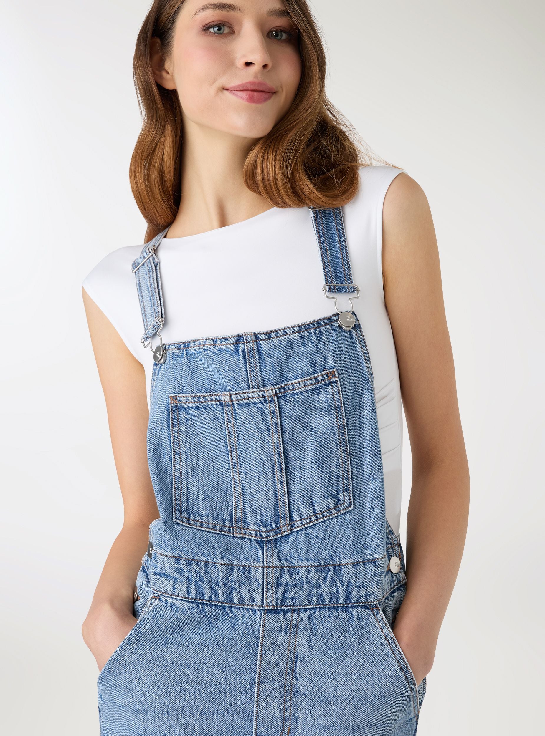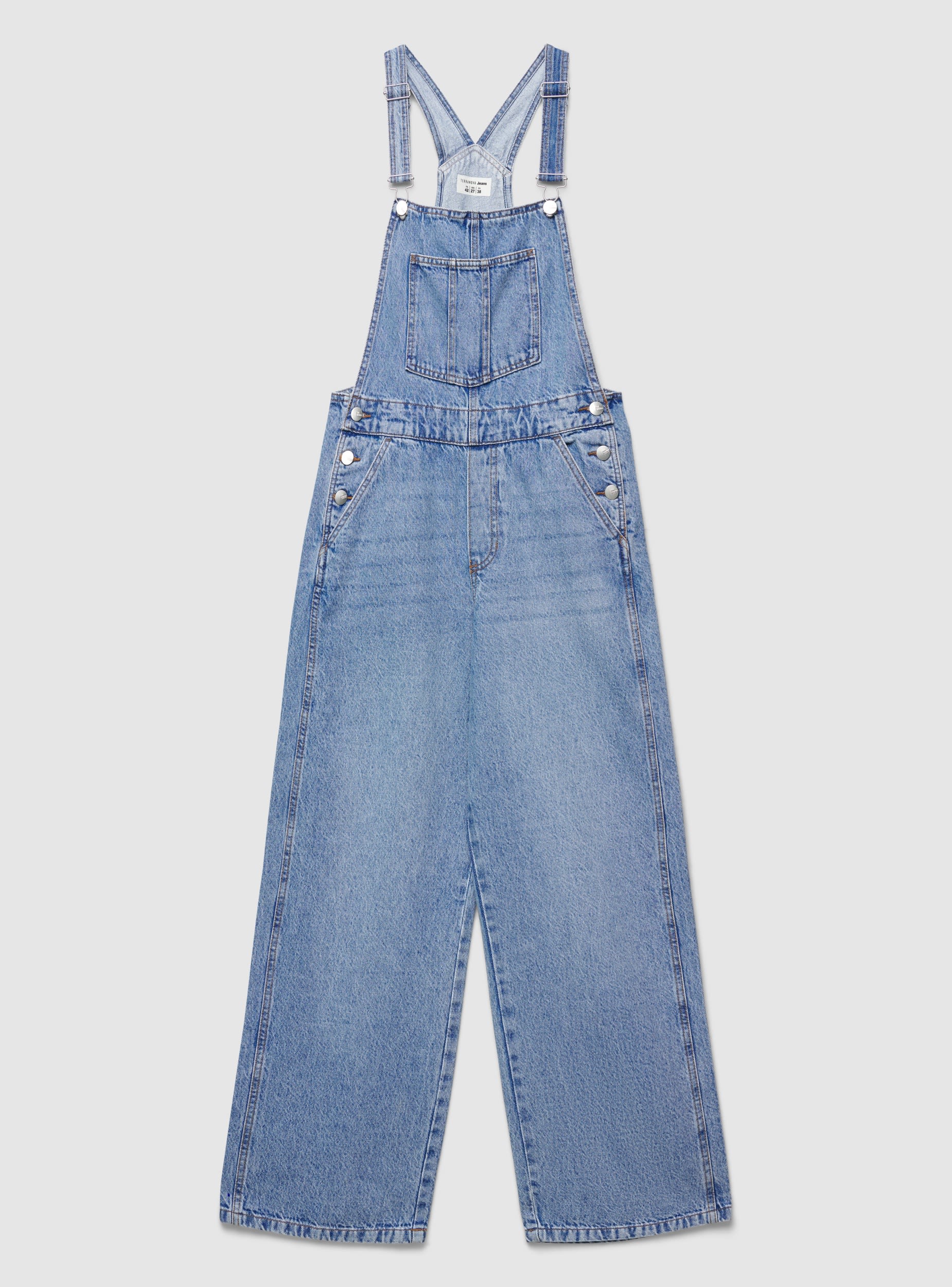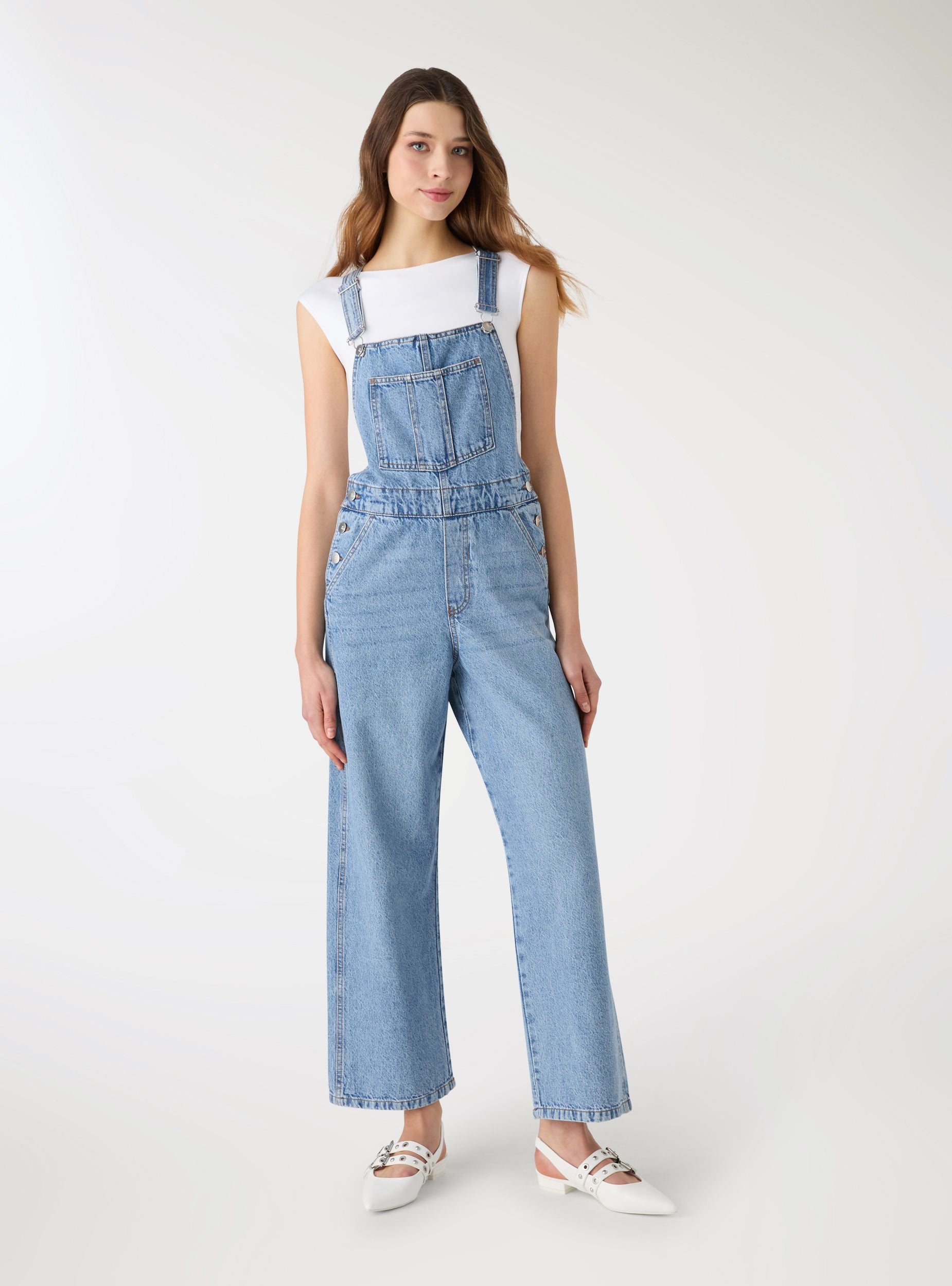 Salopette da donna lunga a tinta unita, ideale per look casual e urban da giorno. Modello con bretelle regolabili e chiusura con bottoni laterali, pratico da indossare con magliette o top aderenti e sneakers. Presenta tasca applicata sul petto e tasche posteriori, con gamba dritta e vestibilità comoda.Dettagli