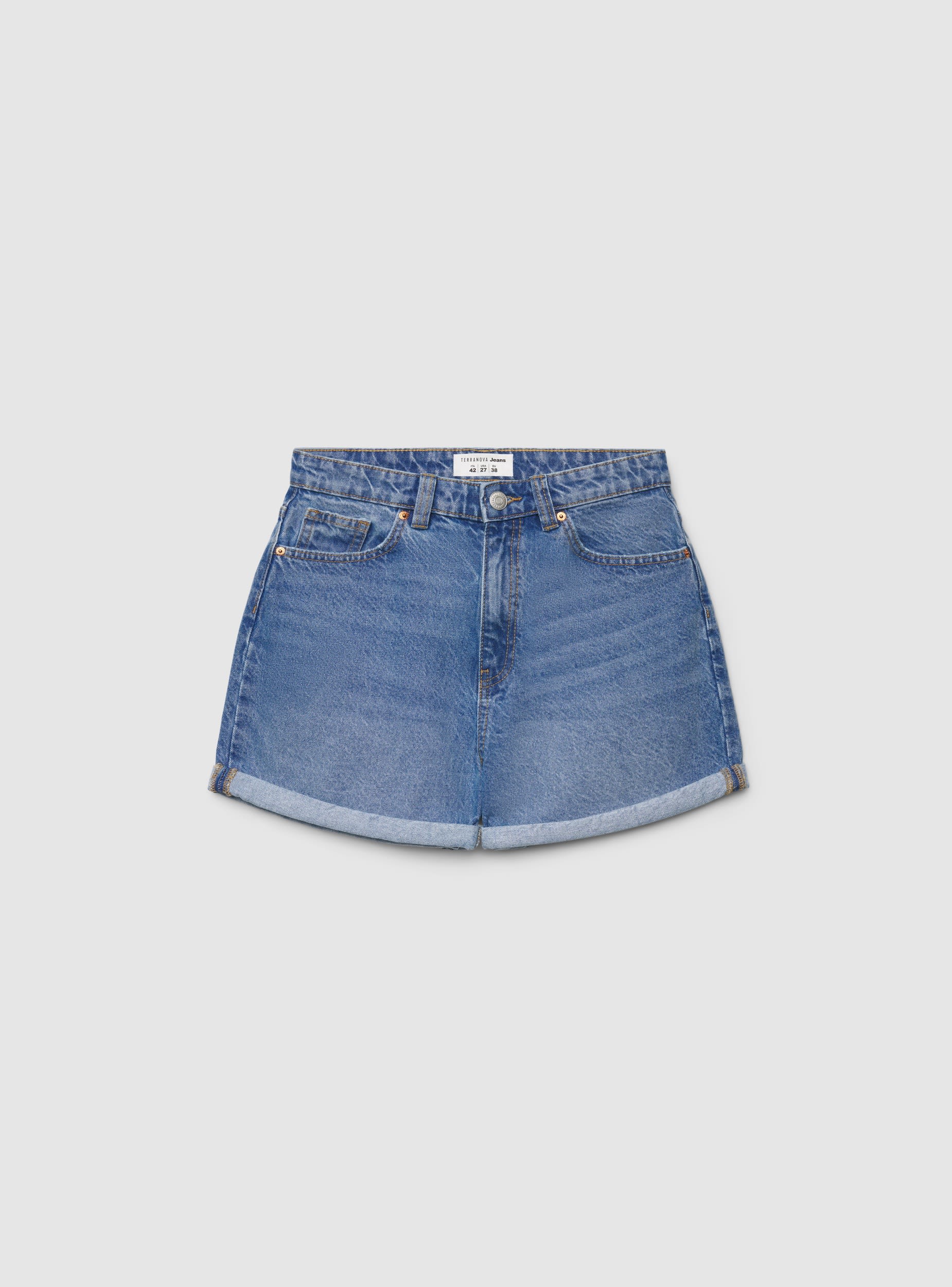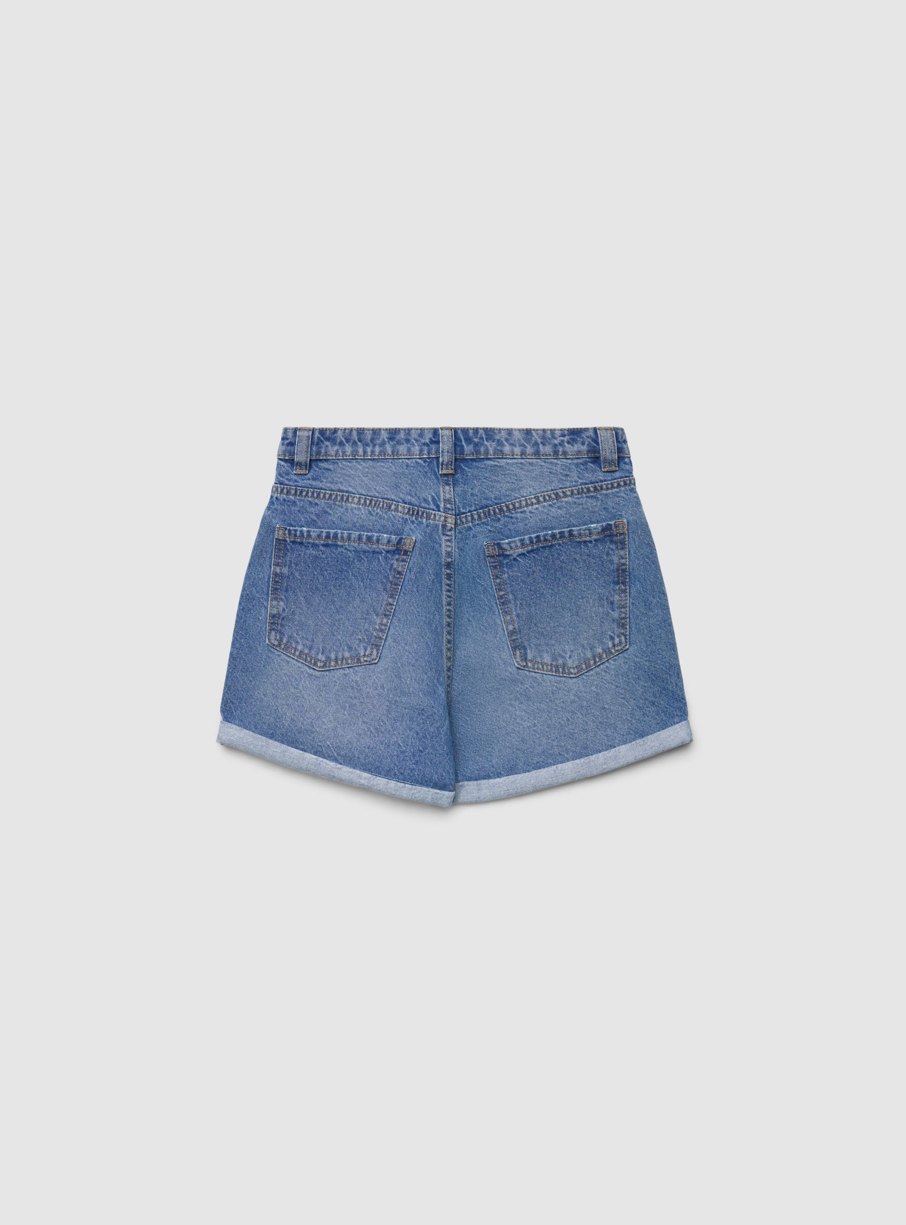 Shorts jeans mom con risvolto - Blu denim medio