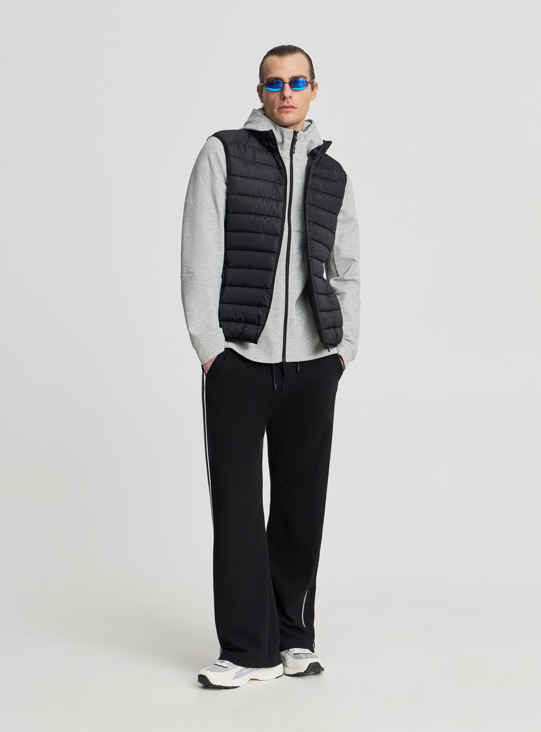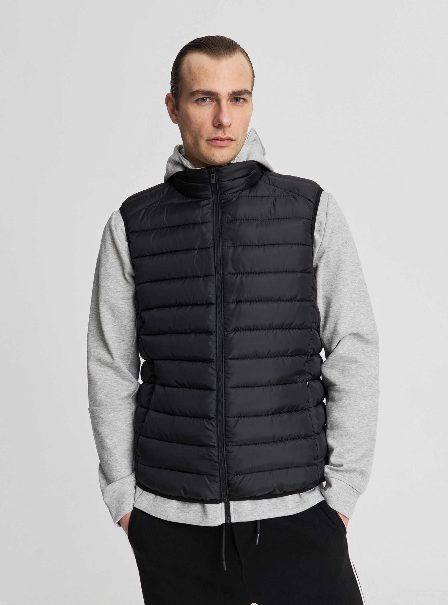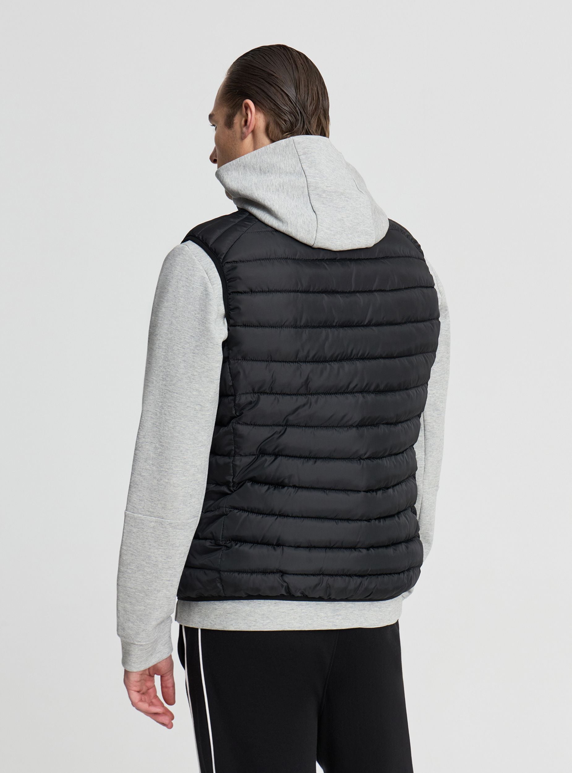 Smanicato da uomo a tinta unita con imbottitura leggera. Modello senza maniche con collo alto e chiusura frontale con zip, ideale per layering su felpe o magliette nelle mezze stagioni. Trapuntatura orizzontale che valorizza la vestibilità e due tasche laterali pratiche. Perfetto per outfit casual o sportivi, si abbina a jeans e sneakers per un look dinamico.Dettagli