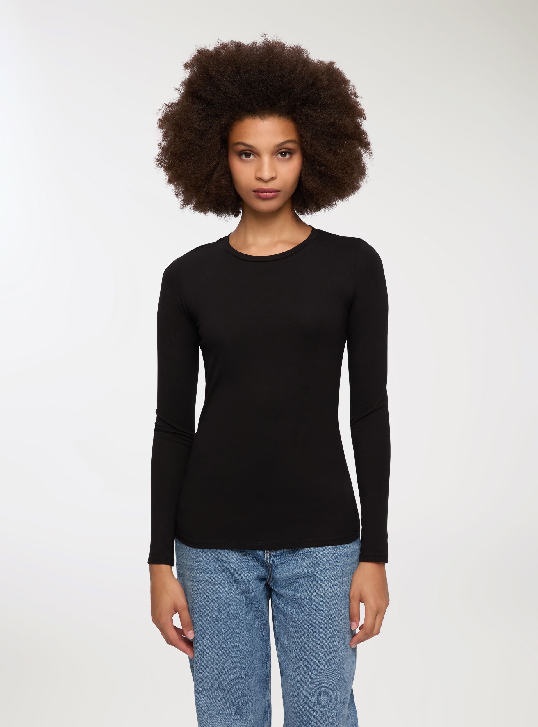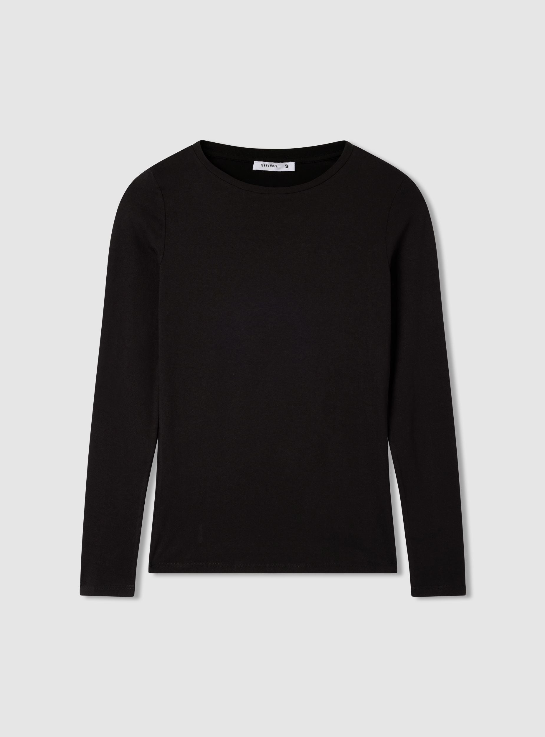 Maglietta da donna a maniche lunghe in cotone elasticizzato, ideale per un look casual e versatile. Presenta una vestibilità comoda e un design a tinta unita, perfetta per essere abbinata a jeans o pantaloni per un outfit quotidiano. Il girocollo aggiunge un tocco di semplicità, rendendola adatta a diverse occasioni. Un capo essenziale per il guardaroba di ogni donna.