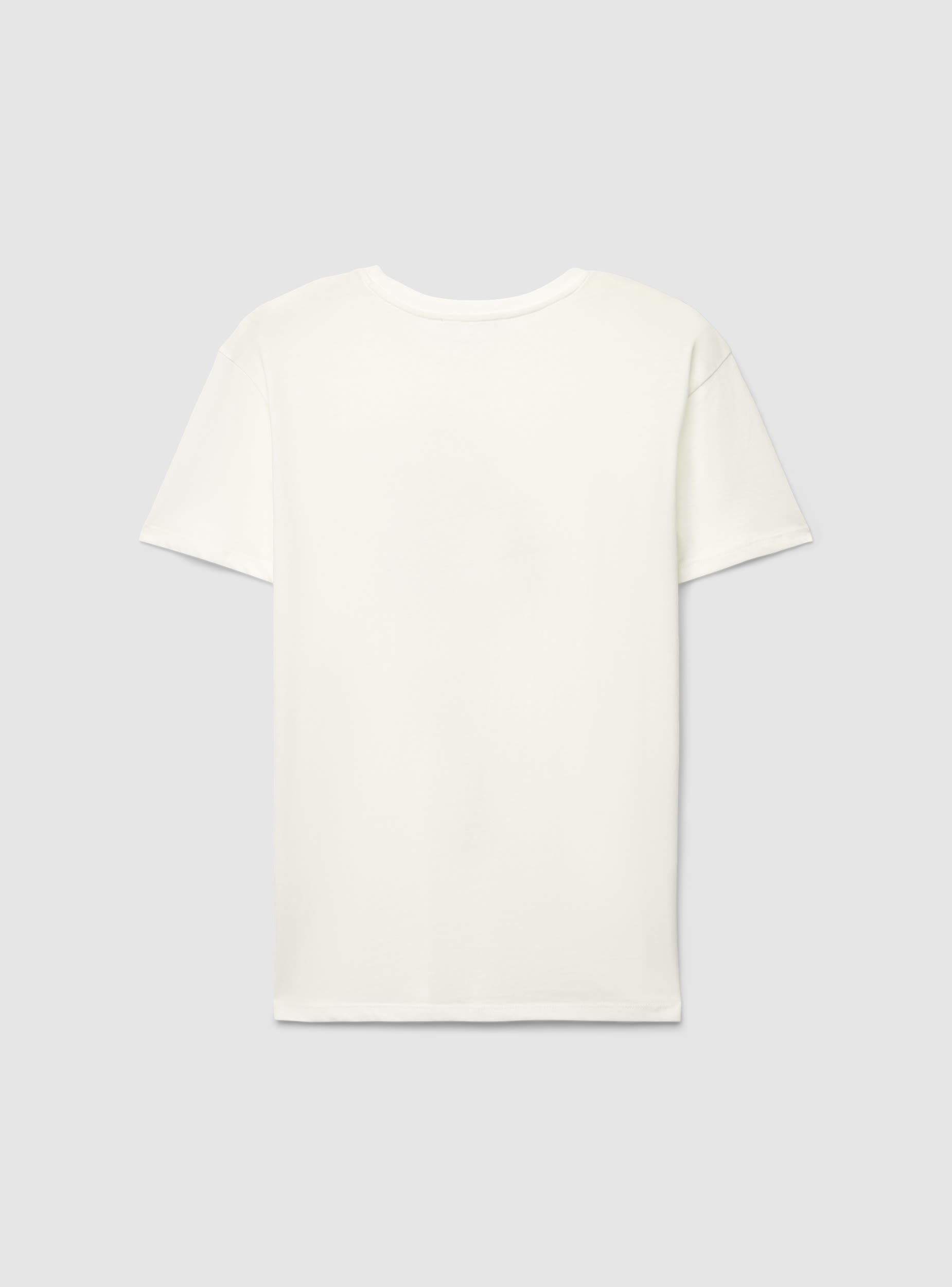 Maglietta da donna con girocollo e maniche corte, impreziosita da un ricamo a cordoncino che delinea un volto stilizzato sul davanti. Vestibilità regular e lunghezza standard, ideale per look casual di tutti i giorni. Facile da abbinare con jeans, pantaloni wide leg o una gonna midi. Design a tinta unita con dettaglio ricamato a contrasto che dona carattere al tuo outfit.