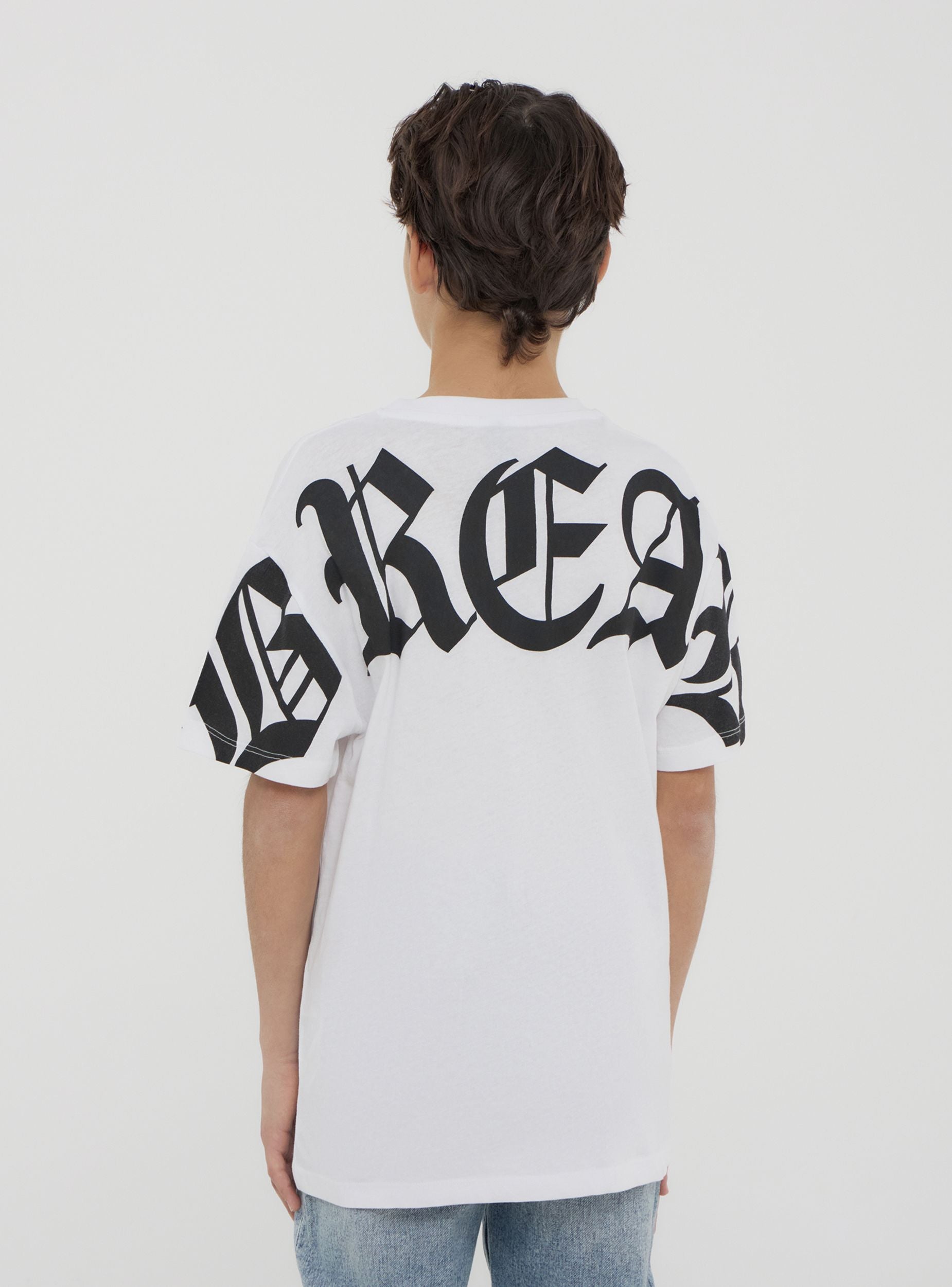 Maglietta da bambino con maniche corte e girocollo, perfetta per un look casual e grintoso. Caratterizzata da stampe in stile gotico e scritte, è ideale per chi desidera uno stile distintivo durante momenti di svago o attività quotidiane. Un capo dal design accattivante e moderno, che esprime personalità.Dettagli