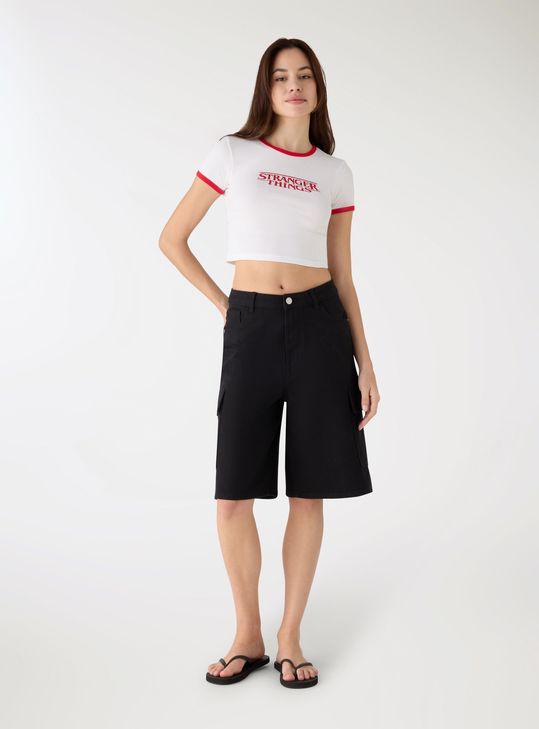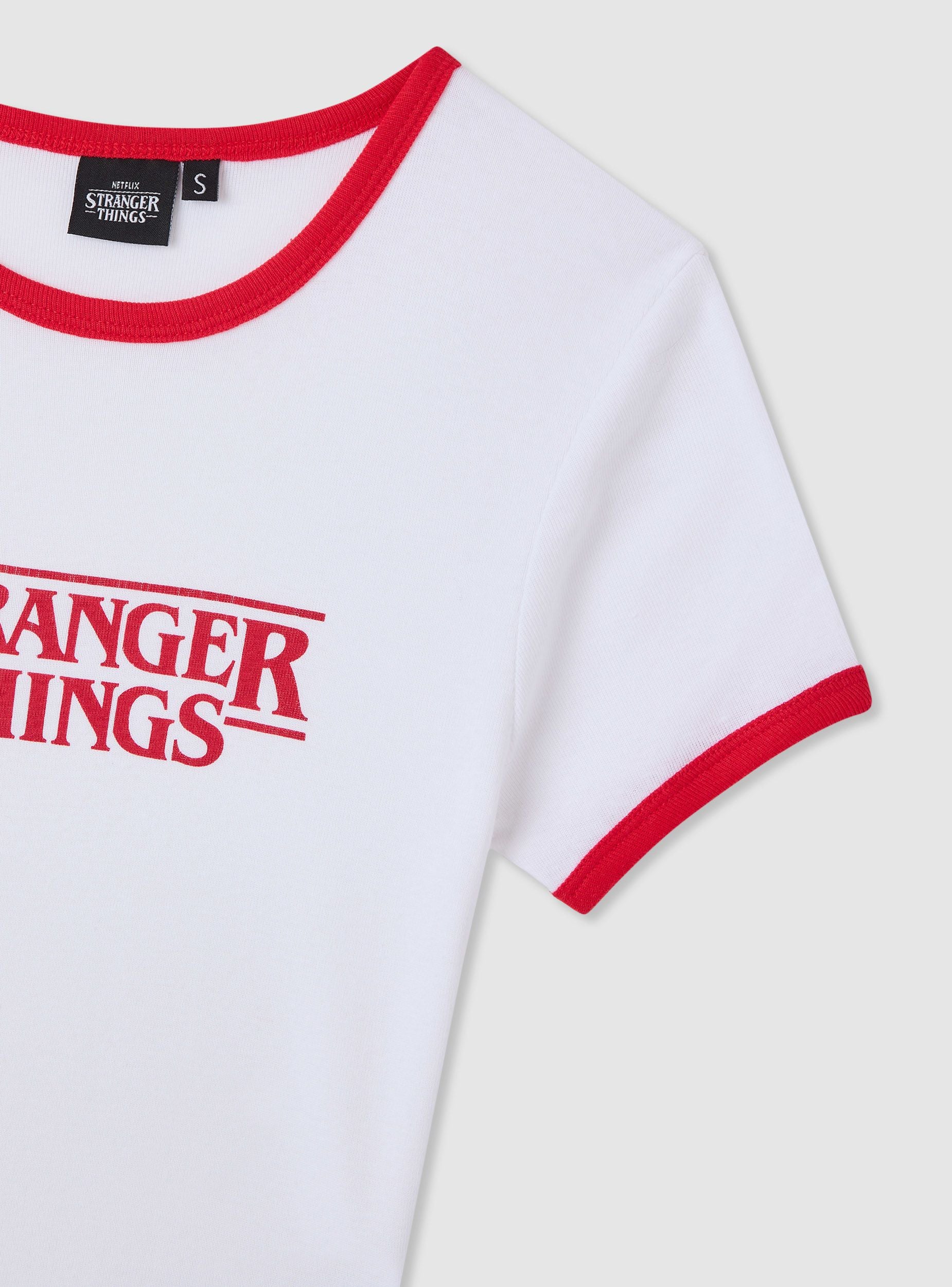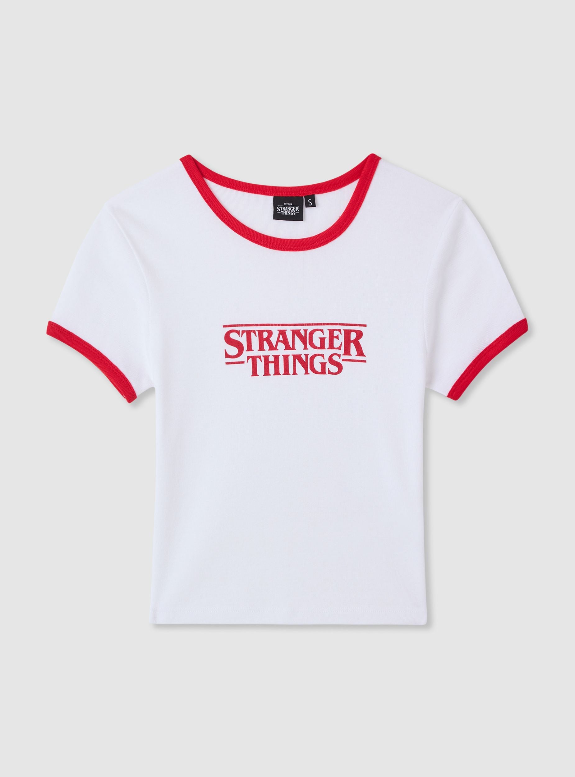 Maglietta da donna con vestibilità crop, ideale per look urban e casual. Girocollo e maniche corte con profili a contrasto valorizzano la linea. Sul davanti spicca la stampa Stranger Things® che aggiunge un tocco grafico al guardaroba. Perfetta per outfit con jeans, pantaloni cargo o gonne a vita alta.Dettagli