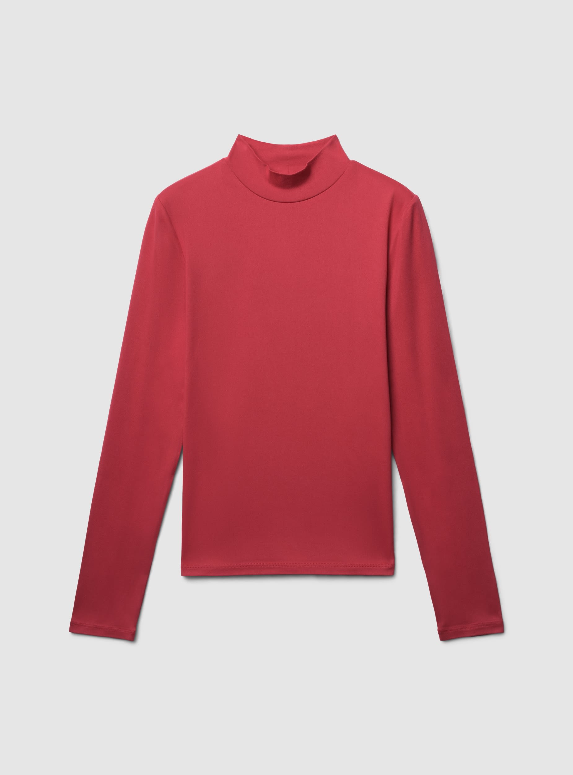 Tessuto caldo. Maglietta da bambina con maniche lunghe e collo alto, ideale per un look casual e versatile. Perfetta per essere indossata sotto maglioni o giacche durante le stagioni piu fresche. La vestibilità comoda e il design tinta unita la rendono adatta a molteplici abbinamenti, sia per la scuola che per il tempo libero.Dettagli