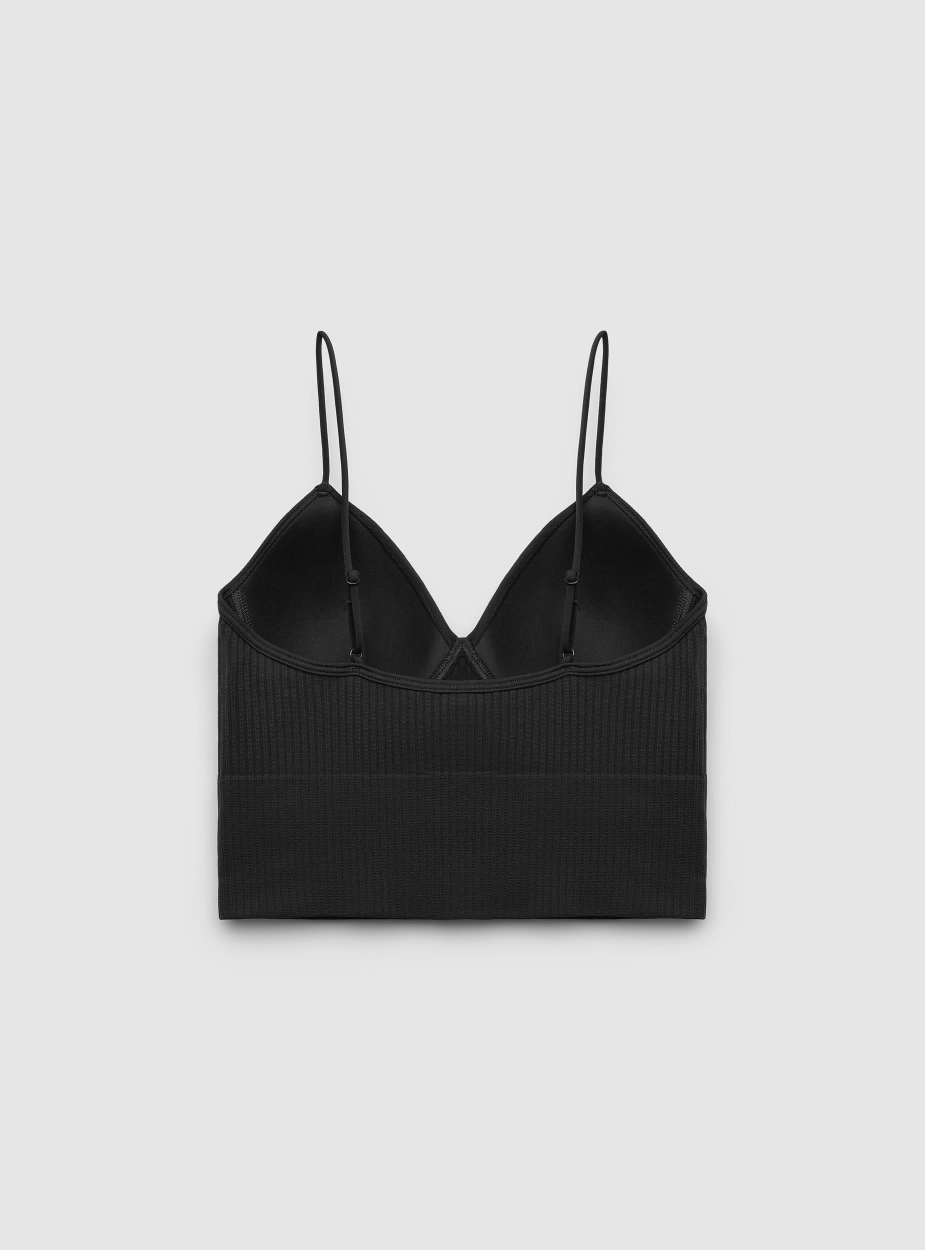 Top da donna a tinta unita con spalline sottili regolabili e coppe sagomate. Modello aderente con lavorazione a costine e fascia elastica sotto il busto che avvolge senza costringere. Perfetto sotto camicie aperte o cardigan, si abbina a jeans o gonne per look casual e comodi.Dettagli