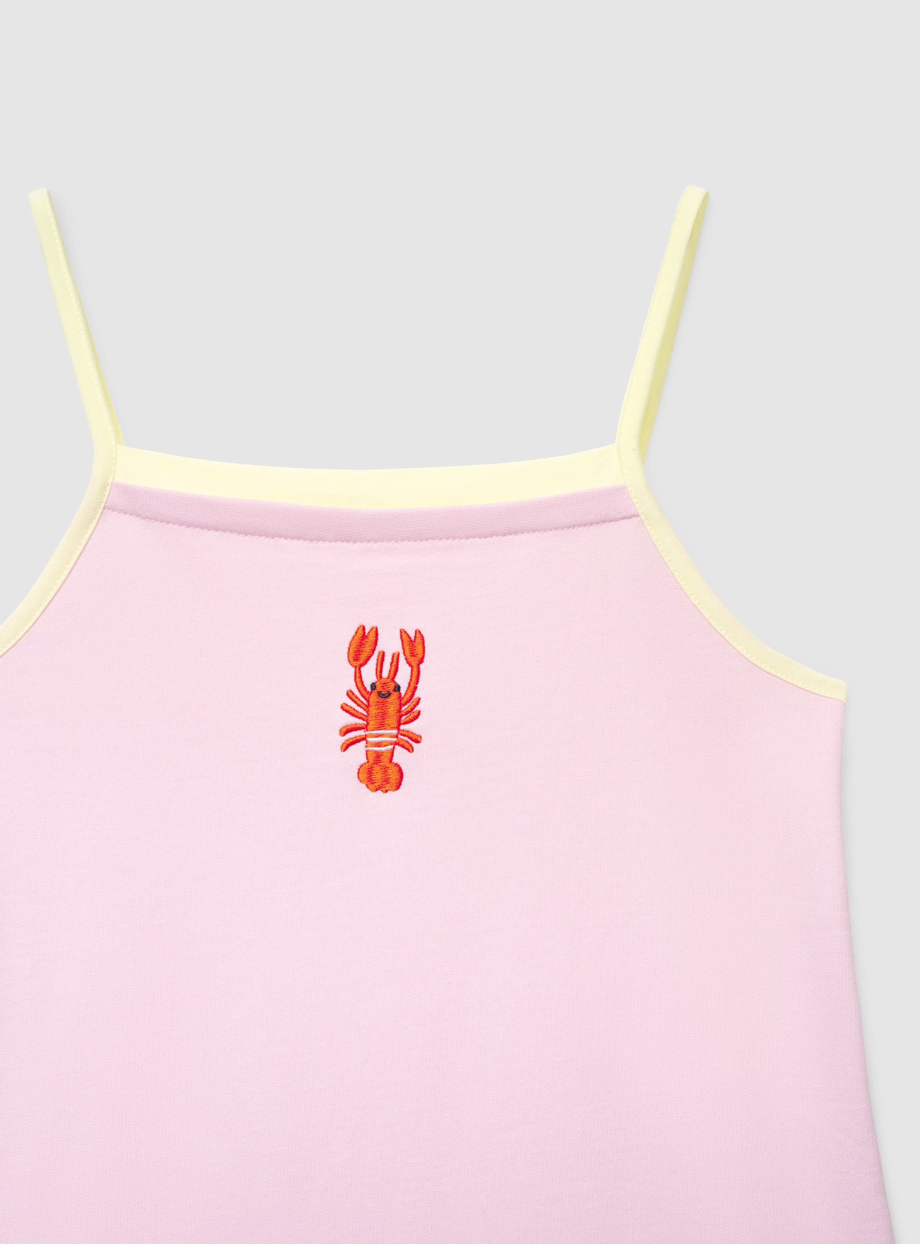 Abito da bambina a tinta unita con spalline sottili e linea svasata, ideale per giornate estive e tempo libero. Presenta collo rotondo e piccolo ricamo frontale che aggiunge un tocco giocoso. Lunghezza mini, facile da indossare con sandali o sneakers per look pratici. Design semplice e confortevole, pensato per massima libertà di movimento.Dettagli