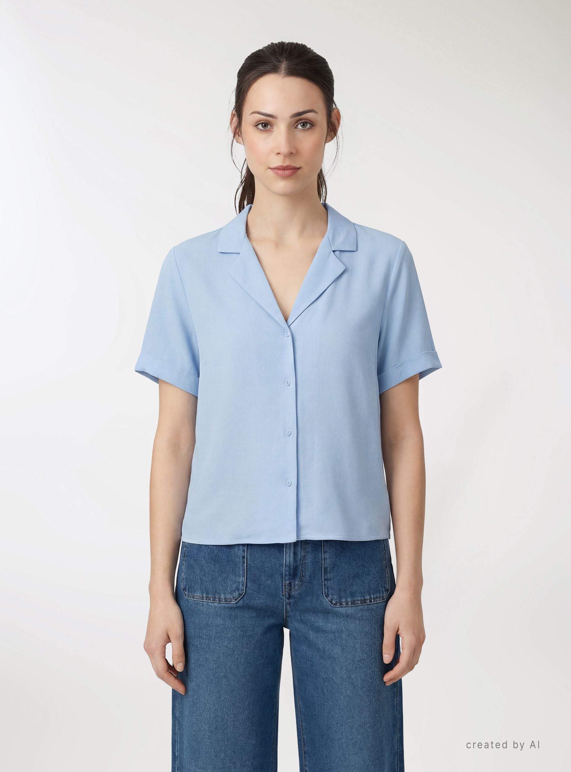 Cămașă damă uni cu mâneci scurte și guler rever. Închidere frontală cu nasturi, ideală pentru ținute casual sau office, purtată cu blugi, pantaloni eleganți sau fuste. Manșete întoarse și croială regular pentru confort zilnic. Perfectă pentru a fi purtată în straturi sub sacou sau peste topuri, evidențiază un look minimalist datorită designului curat și siluetei esențiale.Detalii