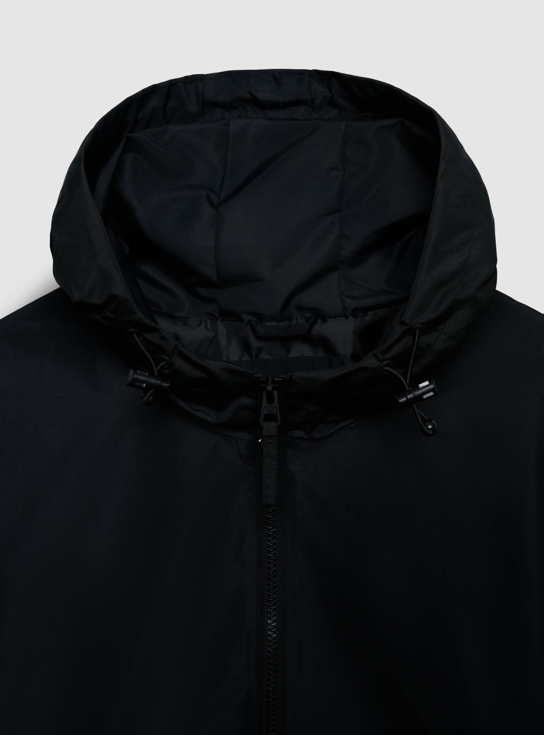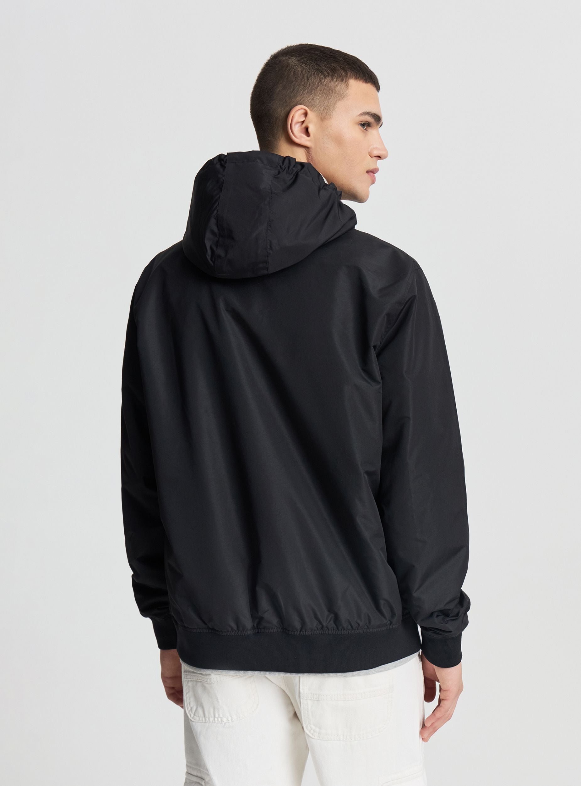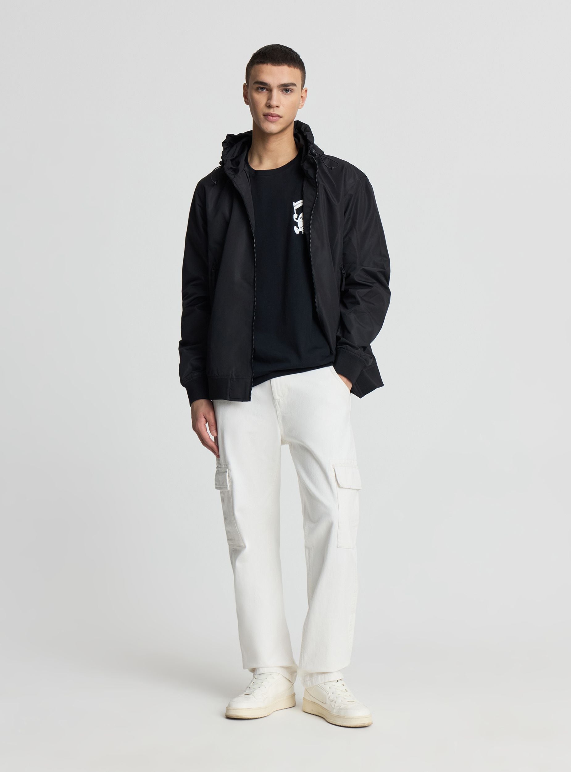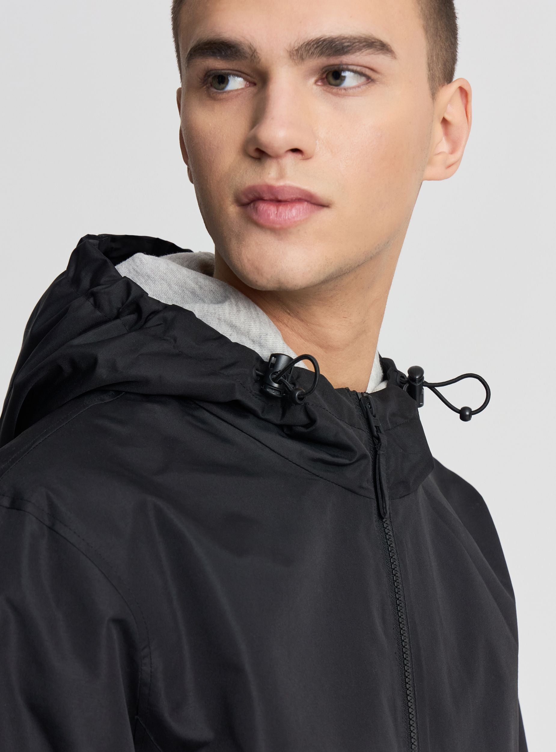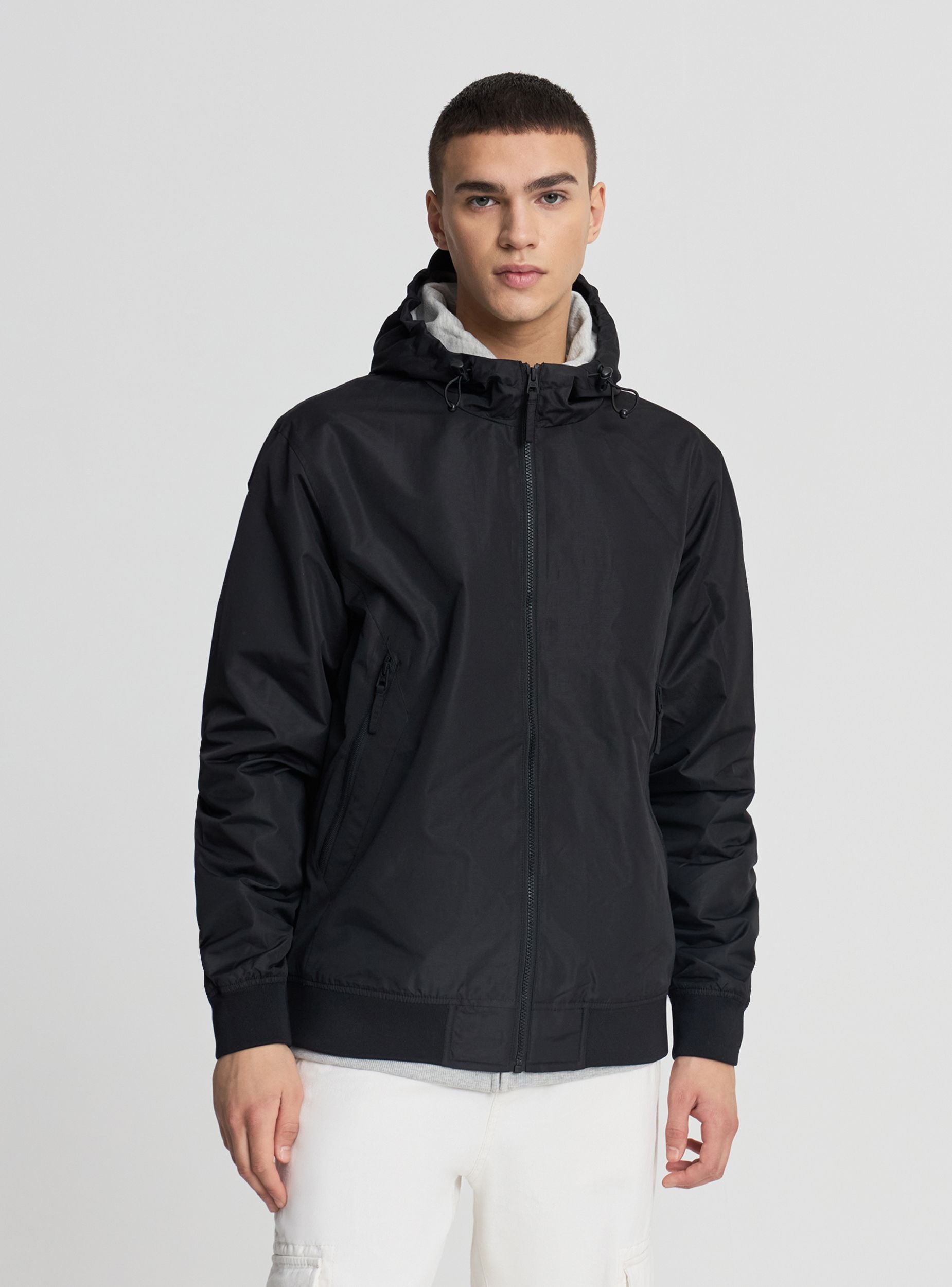 Geacă pentru bărbați uni, cu glugă și închidere frontală cu fermoar. Model ideal pentru sezonul de tranziție și pentru ținute casual sau sportive. Are mâneci lungi cu manșete elastice și buzunare laterale cu fermoar. Perfectă purtată cu blugi și adidași sau peste hanorac și pantaloni sport pentru timpul liber.Detalii