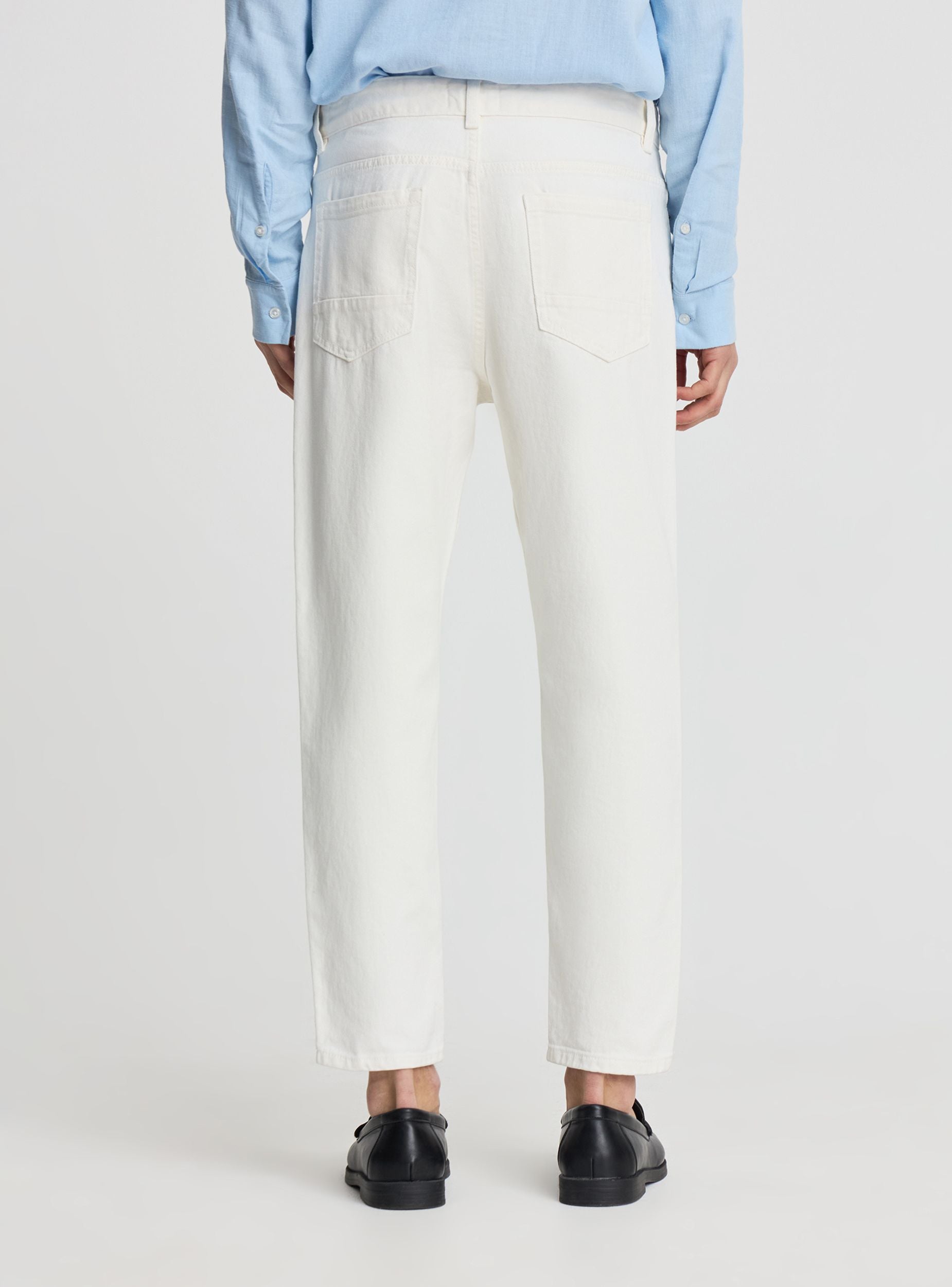 Jeansi de bărbați uni, cu croială relaxed. Talie cu șlițuri pentru curea, închidere cu nasture și fermoar. Cinci buzunare. Perfect pentru timpul liber și lookuri casual, se potrivesc cu hanorace sau cămăși pentru outfituri versatile. Ideal cu adidași sau ghete.Detalii