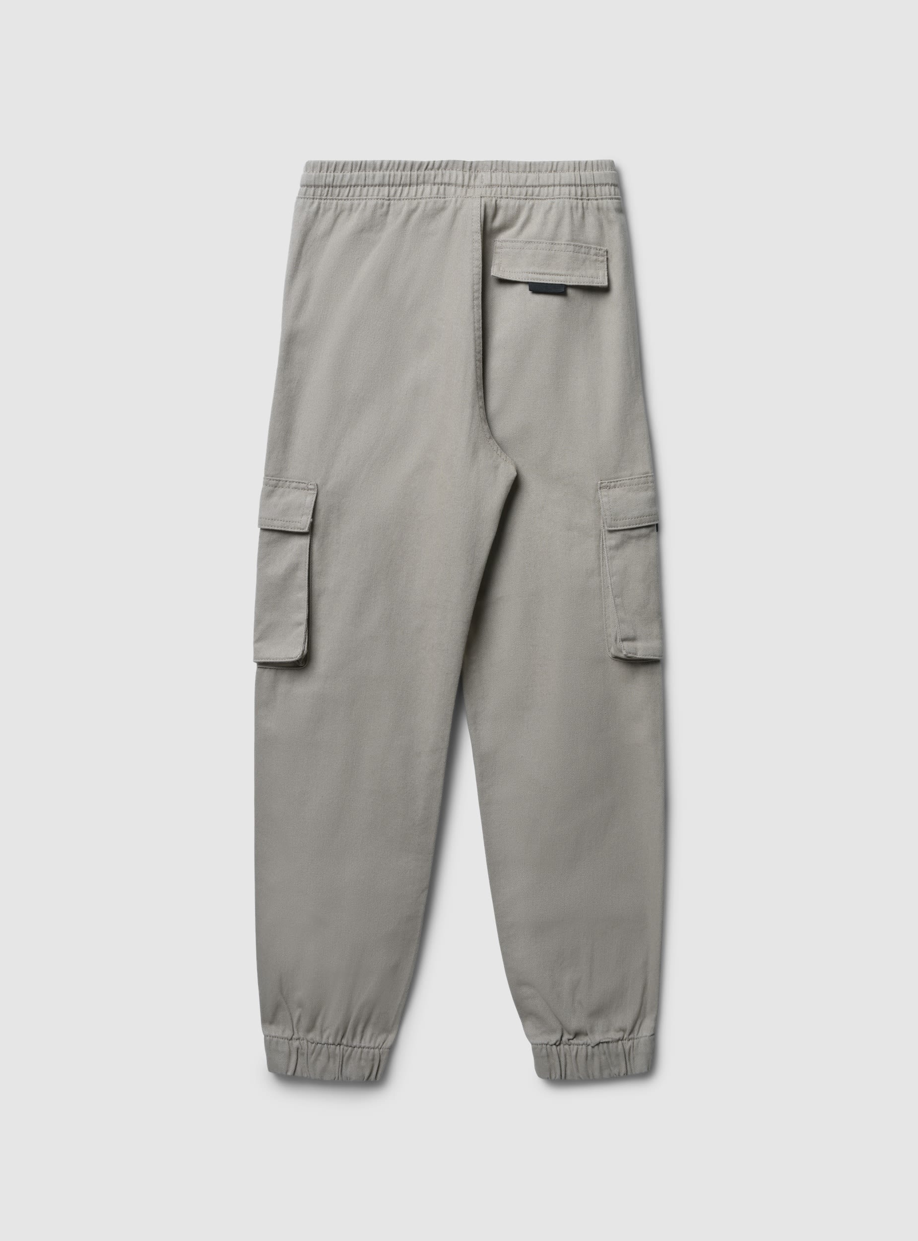 Pantaloni pentru copii cu design uni și buzunare cargo laterale. Ideali pentru un look casual și practic, perfecți pentru zilele petrecute în aer liber sau pentru timpul liber. Croială confortabilă cu elastic în talie și șnur reglabil. Buzunarele adaugă funcționalitate și stil, în timp ce tivul elasticizat asigură o potrivire sigură și confortabilă. Un articol versatil pentru orice ocazie informală.Detalii