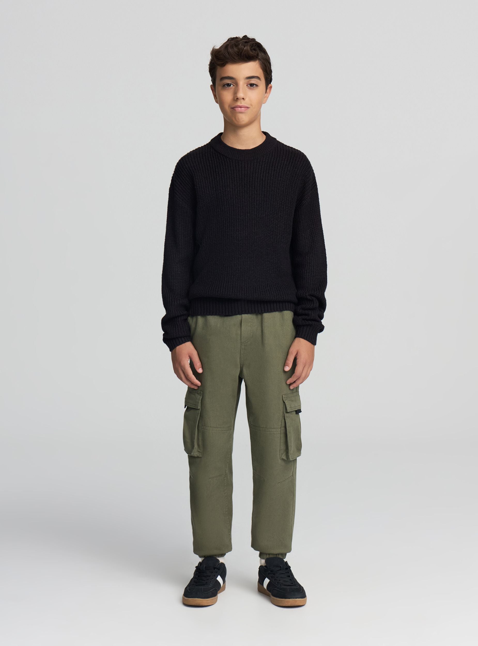 Pantaloni pentru copii cu design uni și buzunare cargo laterale. Ideali pentru un look casual și practic, perfecți pentru zilele petrecute în aer liber sau pentru timpul liber. Croială confortabilă cu elastic în talie și șnur reglabil. Buzunarele adaugă funcționalitate și stil, în timp ce tivul elasticizat asigură o potrivire sigură și confortabilă. Un articol versatil pentru orice ocazie informală.Detalii