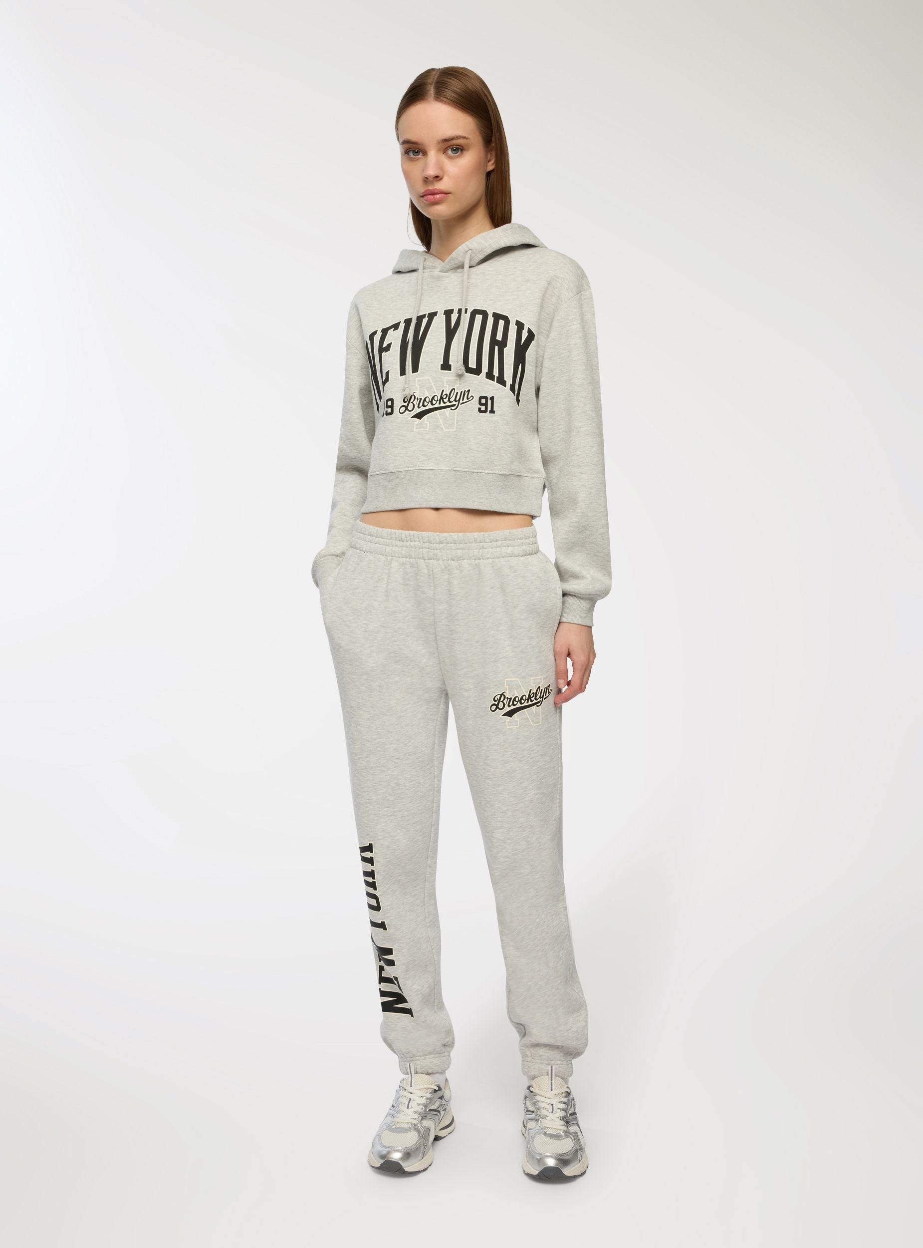 Pantaloni de trening groși pentru femei cu inscripție college, ideali pentru un look casual și confortabil. Au talie elastică cu șnur pentru o potrivire reglabilă și confortabilă. Mânșetele elastice la glezne adaugă un aer modern, iar buzunarele laterale oferă un plus de practicitate. Perfecte pentru timpul liber sau pentru un outfit sportiv, se potrivesc ușor cu hanorace și adidași.Detalii
