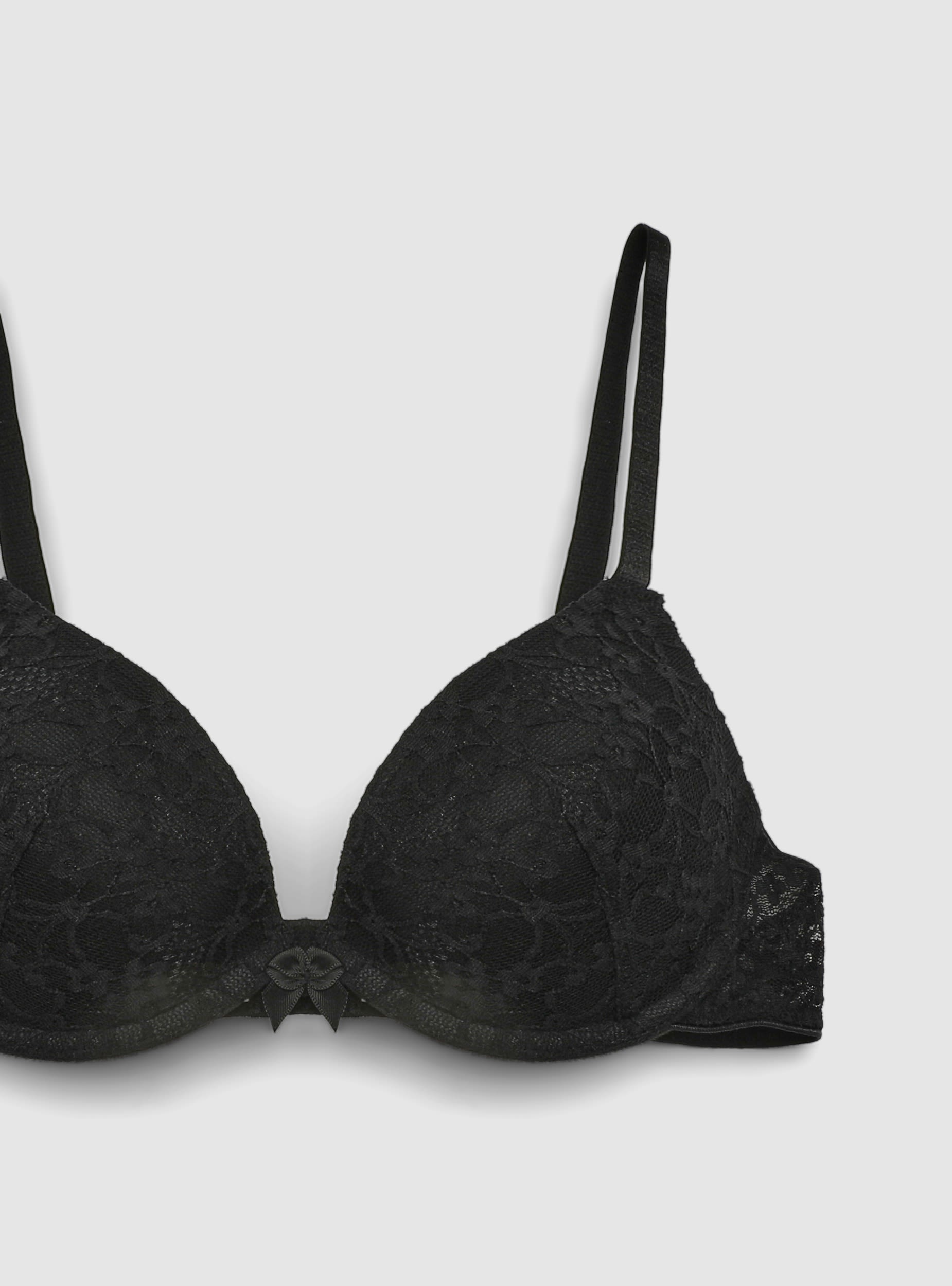 Sutien de damă super push-up din dantelă, ideal pentru a evidenția decolteul sub cămăși, topuri sau rochii. Cupe căptușite cu armătură pentru susținere și volum, bretele reglabile și închidere în spate cu cârlige. Finisat cu o fundiță centrală și o bandă laterală din dantelă care se mulează pe corp. Perfect pentru utilizarea zilnică sau pentru un look mai feminin în ocazii speciale, într-o singură culoare.Detalii