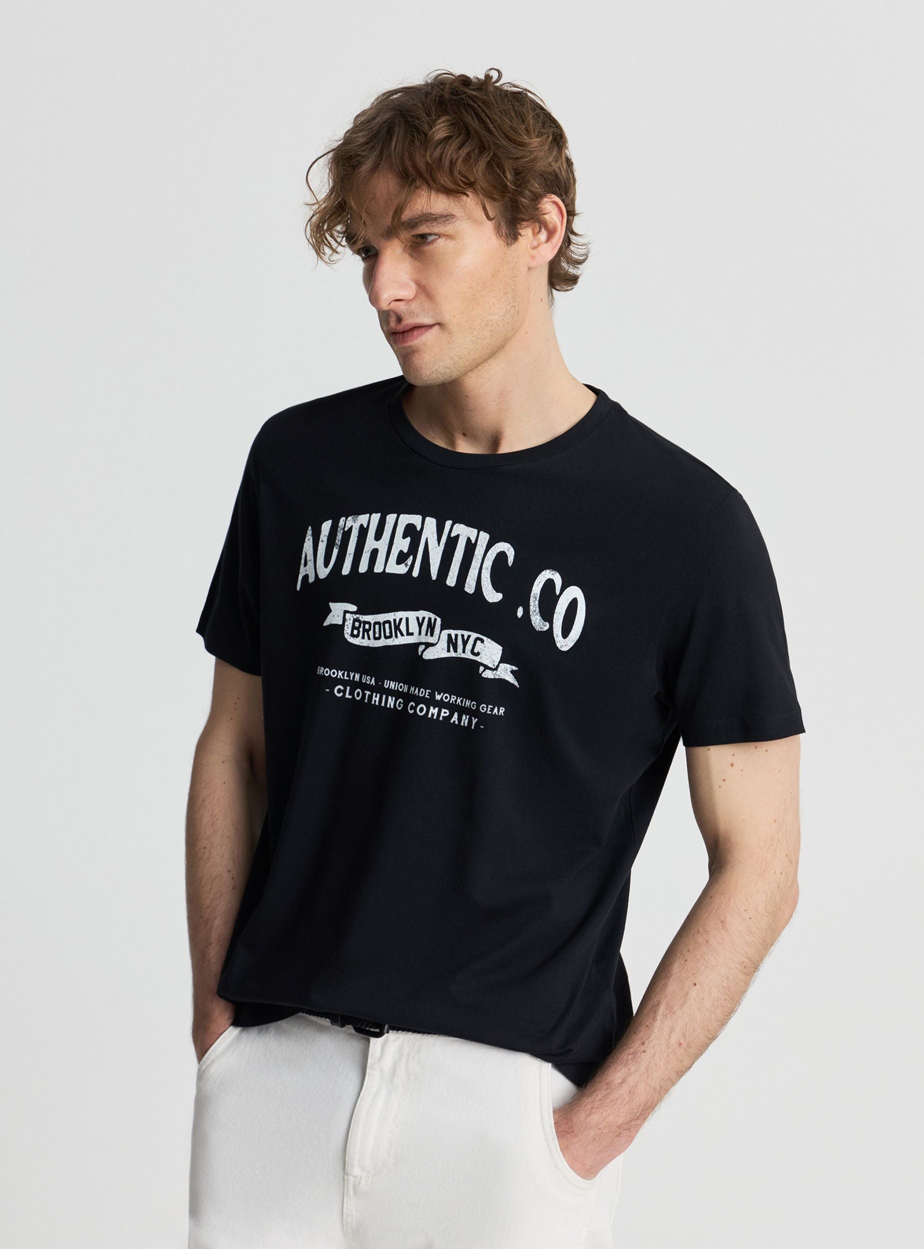 Tricou pentru bărbați cu inscripție frontală. Guler rotund și mâneci scurte, croială regular pentru un fit versatil și confortabil. Perfect pentru timpul liber și look urban, se potrivește ușor cu blugi sau pantaloni scurți și adidași. O piesă ideală pentru ținute zilnice și casual.Detalii