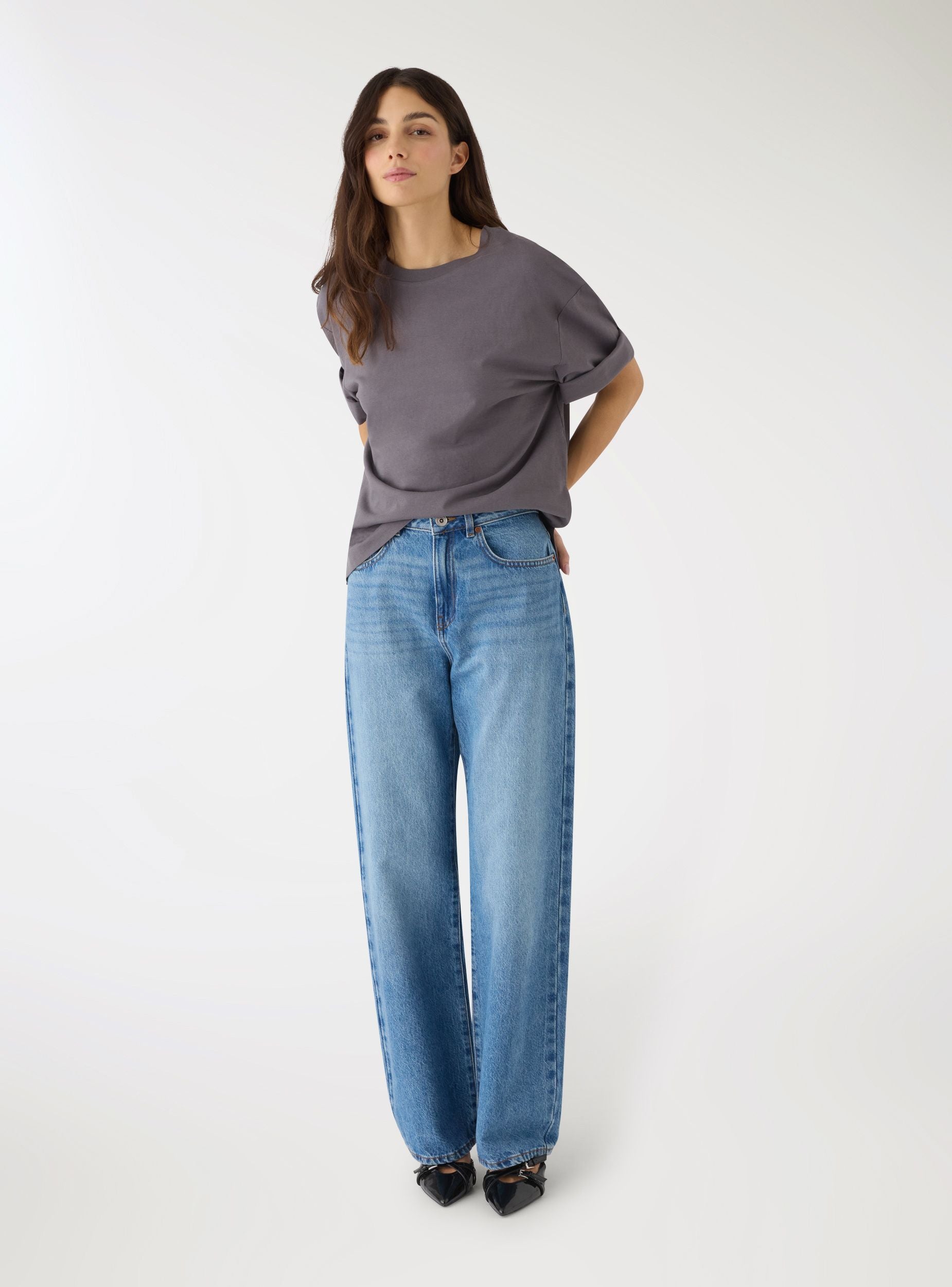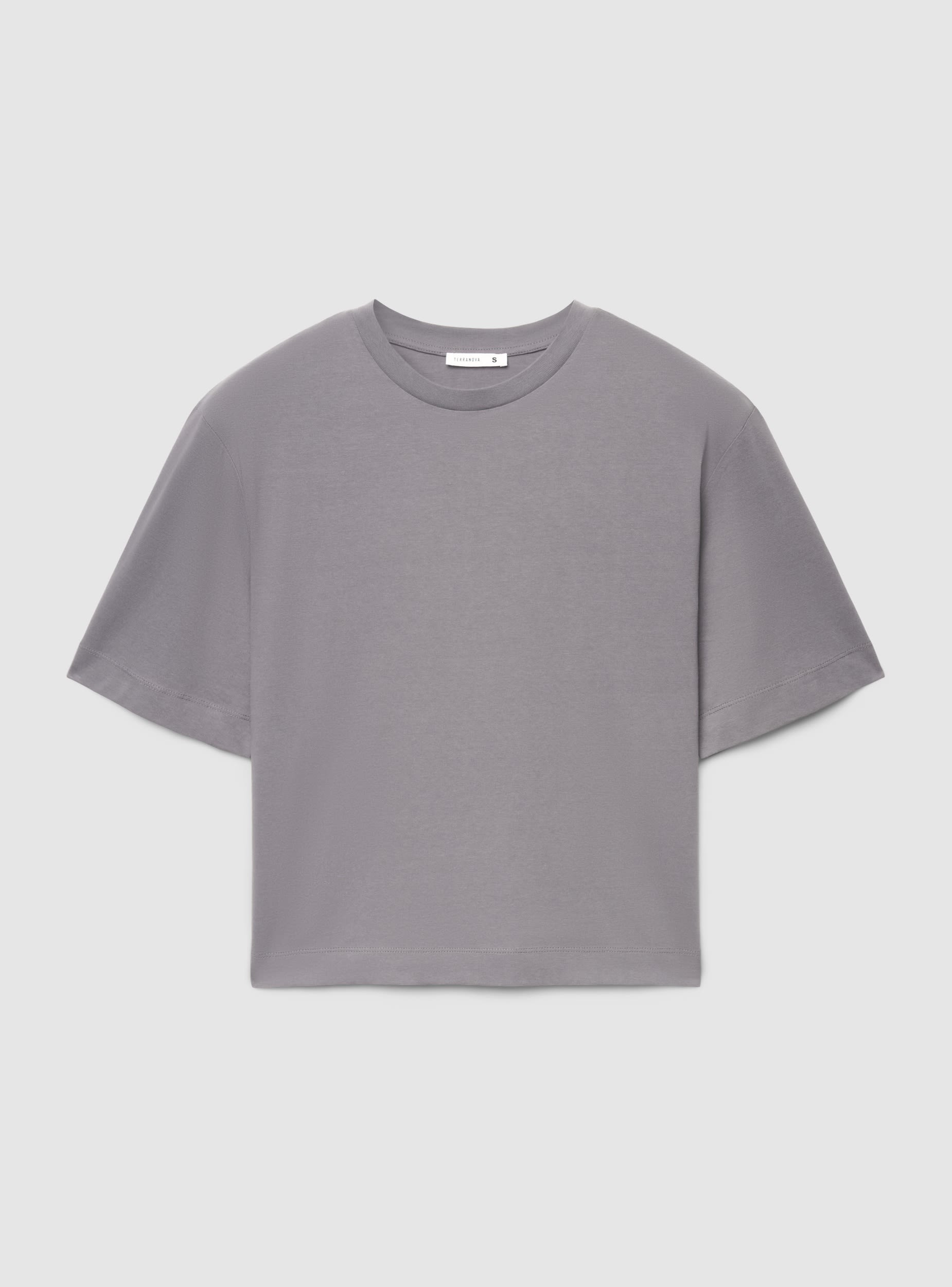 Tricou oversize pentru femei, uni, cu umeri căzuți și mâneci scurte. Guler rotund și croială ușor scurtă, ideal pentru un look casual și urban. Perfect cu blugi cu talie înaltă, pantaloni cargo sau fuste midi pentru o ținută versatilă. Material moale și confortabil, ușor de asortat. Ideal pentru purtat zilnic, se pretează la suprapuneri cu cămăși deschise sau jachete ușoare.