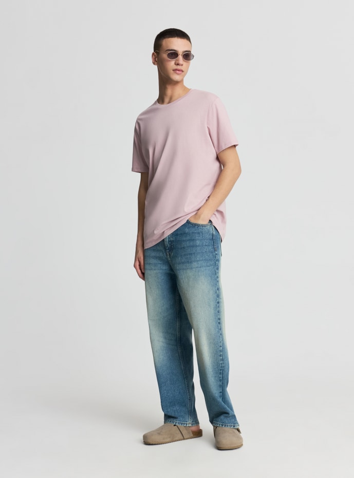 Men's plain crew neck t-shirt with short sleeves, designed for everyday wear. Regular fit for optimal comfort and easy to pair with jeans, joggers, or shorts. The simple design enhances any look and is suitable for layered outfits with an open shirt or sweatshirt. Its clean lines make it ideal for leisure time and casual occasions.