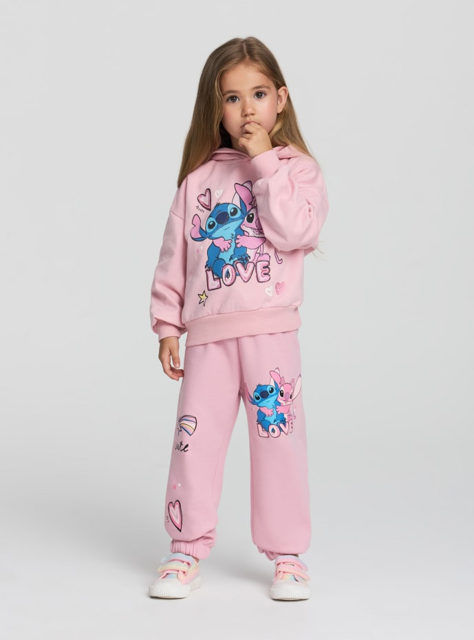 Teški dečiji dukserici idealni za slobodno vreme i svakodnevne aktivnosti. Imaju štampu sa likovima iz Stitch® i grafičke detalje napred, elastičan pojas sa vezicom za prilagodljivu veličinu i elastične donje delove nogavica. Savršeni su za kombinovanje sa majicama ili duksericama za udoban i zabavan izgled, osmišljeni su da pruže udobnost i slobodu pokreta tokom igre.