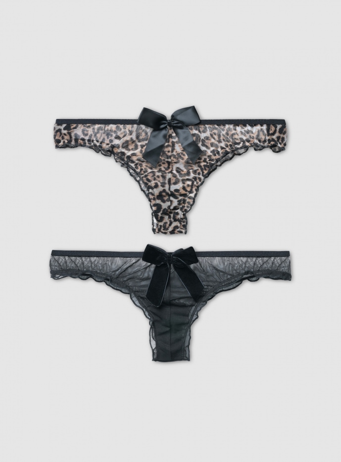 Pakovanje se sastoji od 2 ženska brazilka slip gaćica, ukrašene dekorativnom mašnom. Jedne gaćice su jednobojne, dok druge imaju animalni dezen. Idealne su za upotpunjavanje tvog večernjeg izgleda sa dozom ženstvenosti i elegancije. Savršene su za kombinovanje sa brushalterima kako bi se stvorile originalne kombinacije.
