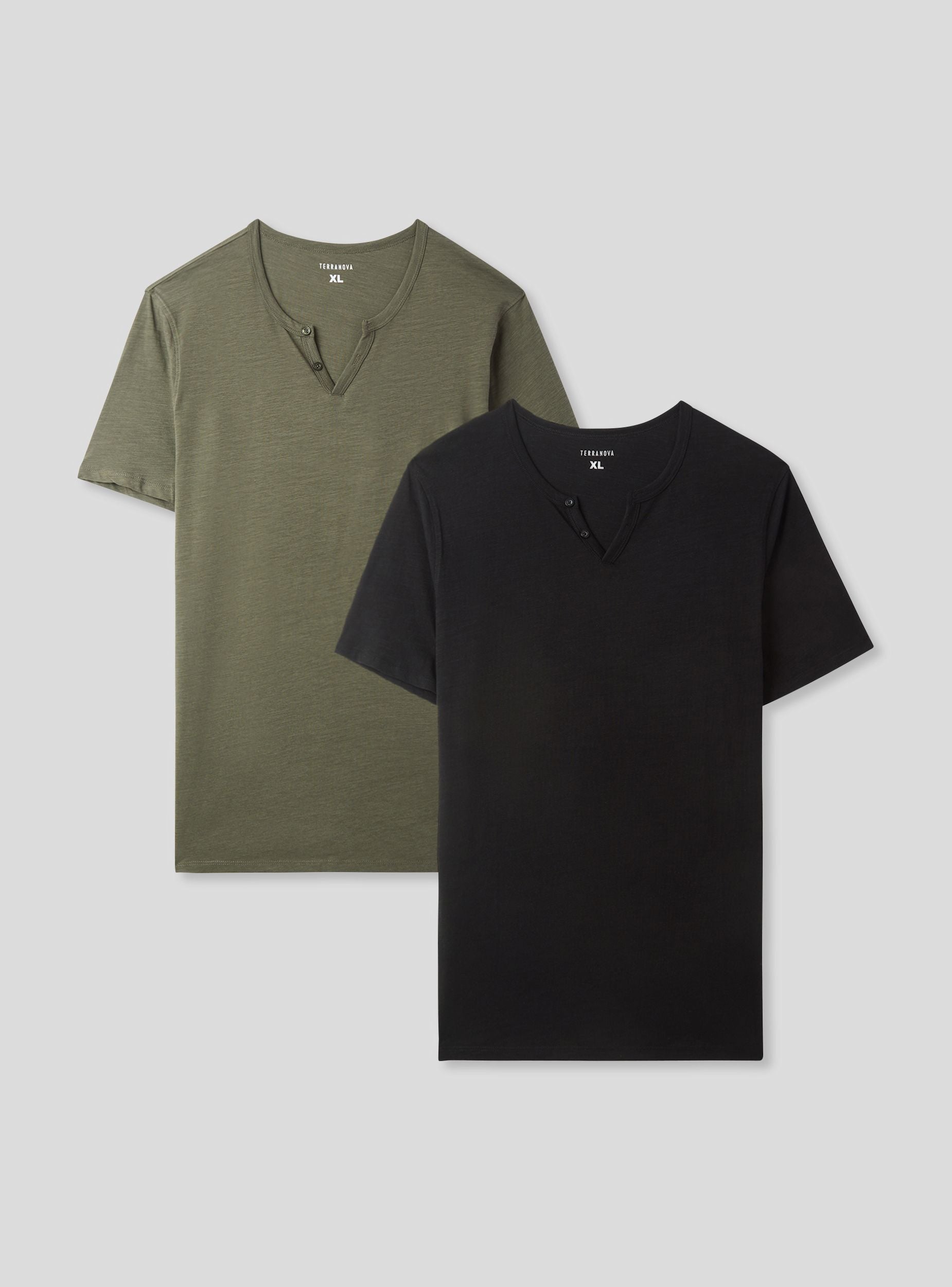 Упаковка из 2 футболок с круглым вырезом из ткани с эффектом пламени - 1x Черный, 1x Шалфей