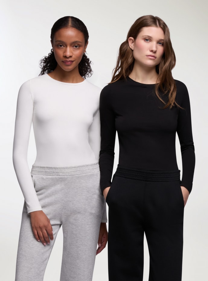 Pack consisting of 2 women's plain tops, ideal for a simple and versatile style. The design features a round neck and long sleeves that gently embrace the silhouette. Perfect to wear as a basic piece to complete various outfits, these tops offer comfort and practicality on every occasion, easily adapting to casual or formal looks. The pack ensures practicality and variety in the wardrobe.