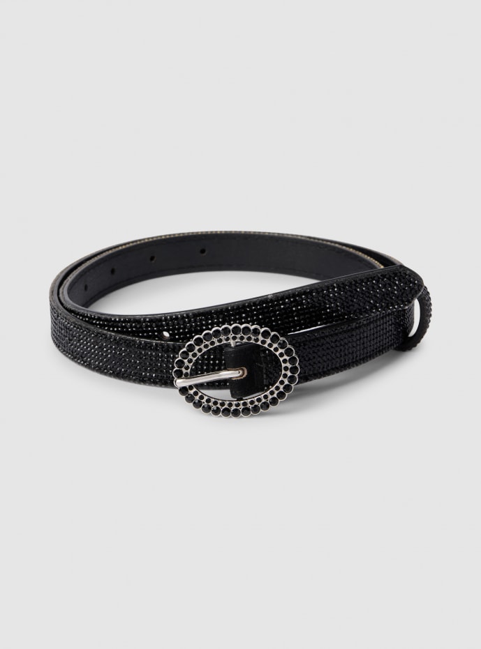 Women's belt ideal for adding a touch of elegance and sparkle to any outfit. Perfect for special occasions or evenings, this belt stands out with its refined design featuring rhinestones and a decorated buckle closure. It can be paired with elegant dresses or trousers for a sophisticated and glamorous look.