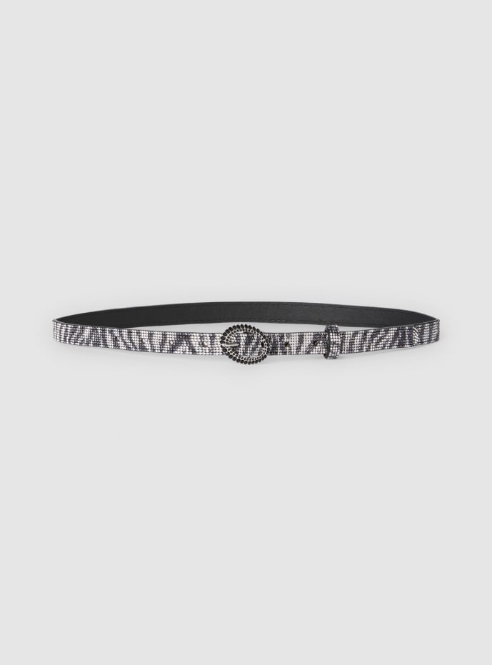 Women's belt ideal for adding a touch of elegance and sparkle to any outfit. Perfect for special occasions or evenings, this belt stands out for its refined design with zebra-striped rhinestones and a decorative buckle closure. It can be paired with elegant dresses or trousers for a sophisticated and glamorous look.