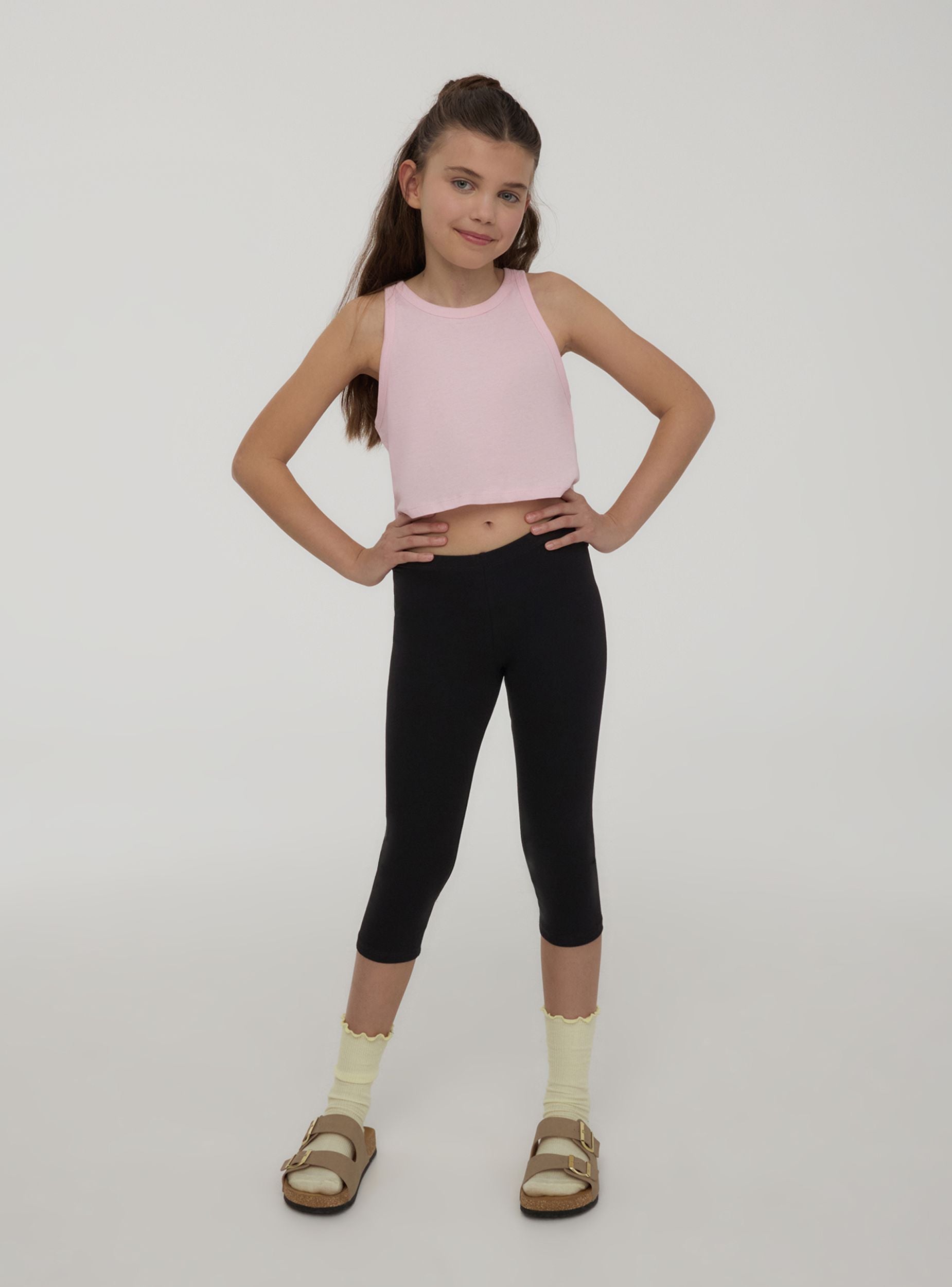 Balenie pozostávajúce z 3 legín pre dievčatá, ideálnych na voľný čas alebo každodenné aktivity. S trojštvrťovým dizajnom a elastickým strihom zaručujú pohodlie a voľnosť pohybu. Jednoduchá farba ich robí univerzálnymi a ľahko kombinovateľnými, ideálne na vytvorenie praktických a pohodlných outfitov na každú príležitosť.Detaily