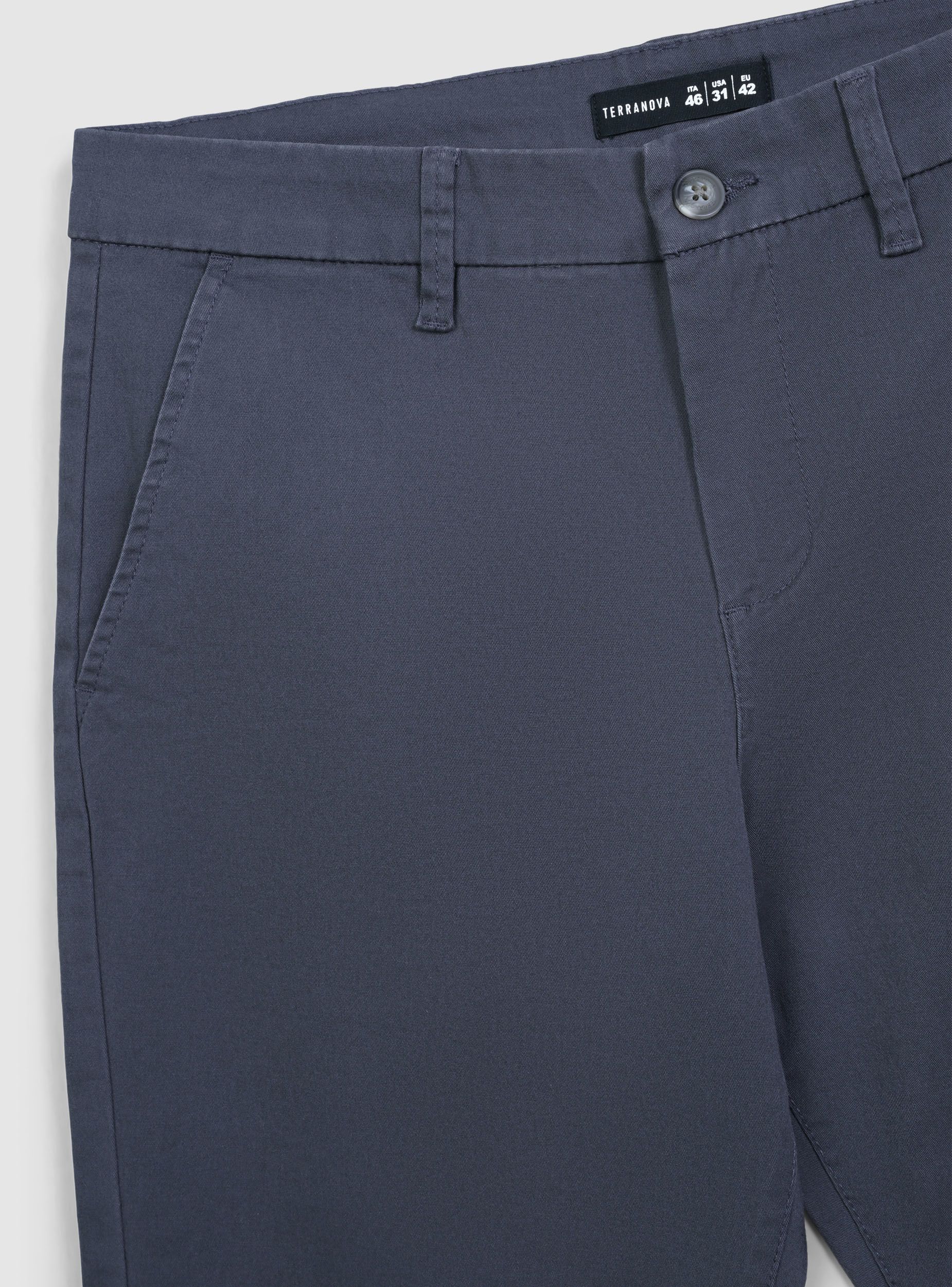 Pánske chino nohavice ideálne na formálny alebo ležérny vzhľad. Majú regular strih, ktorý zaručuje pohodlie a štýl. Sú vybavené zapínaním na gombík a zips, ako aj bočnými a zadnými vreckami pre praktickosť. Perfektné na kombinovanie s košeľami alebo tričkami pre všestranný outfit vhodný na rôzne príležitosti.Detaily