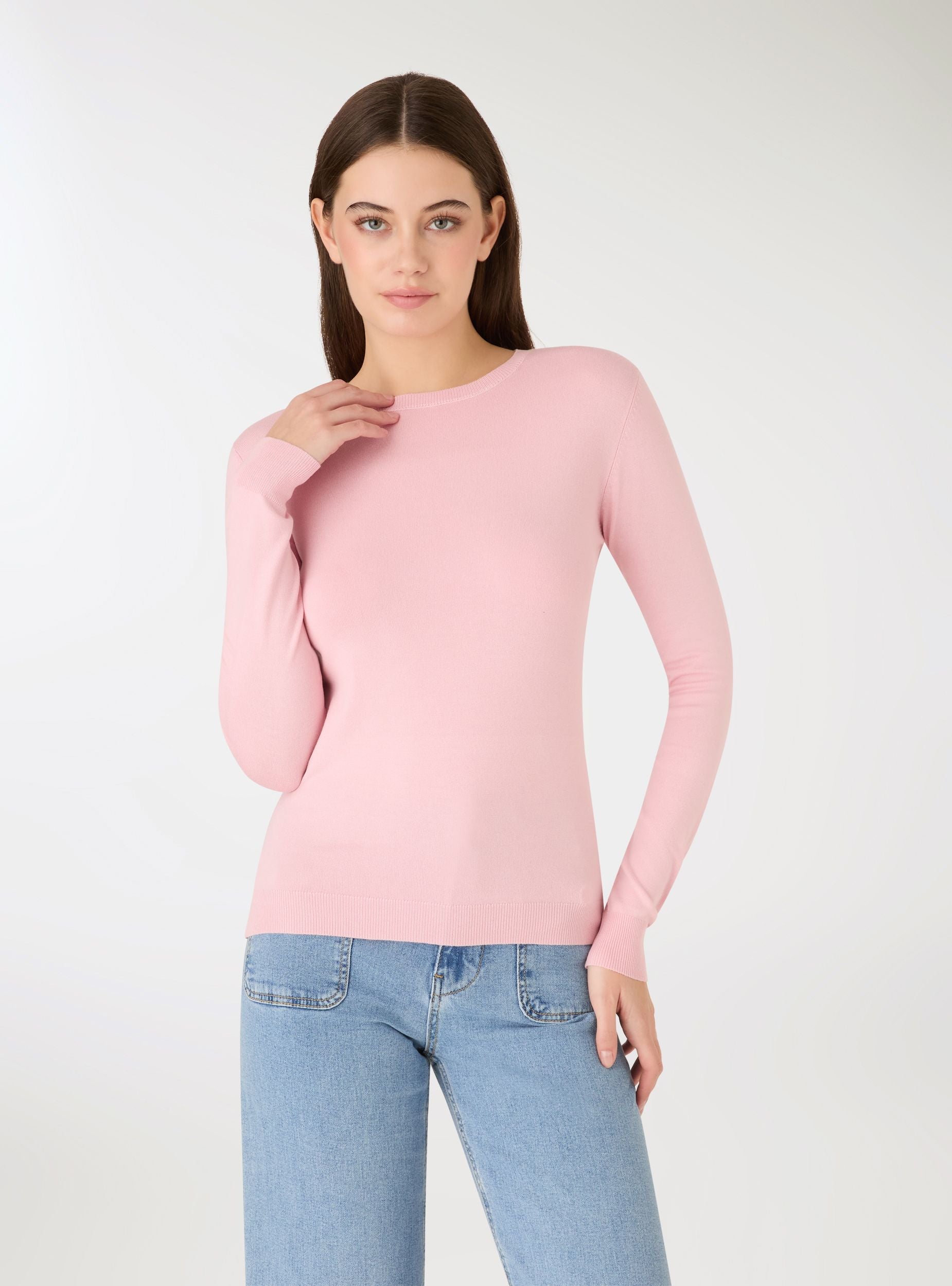 Dámsky jednofarebný pulóver s okrúhlym výstrihom a dlhými rukávmi, ideálny na voľný čas alebo do kancelárie. Čistý dizajn a pohodlný strih ho robia ľahko kombinovateľným s džínsami, sukňami alebo spoločenskými nohavicami. Golier, manžety a spodný lem sú zakončené rebrovaným úpletom pre lepšie držanie tvaru. Základný kúsok na vrstvenie pod bundy alebo trenčkoty a na doplnenie všestranných každodenných outfitov.Detaily