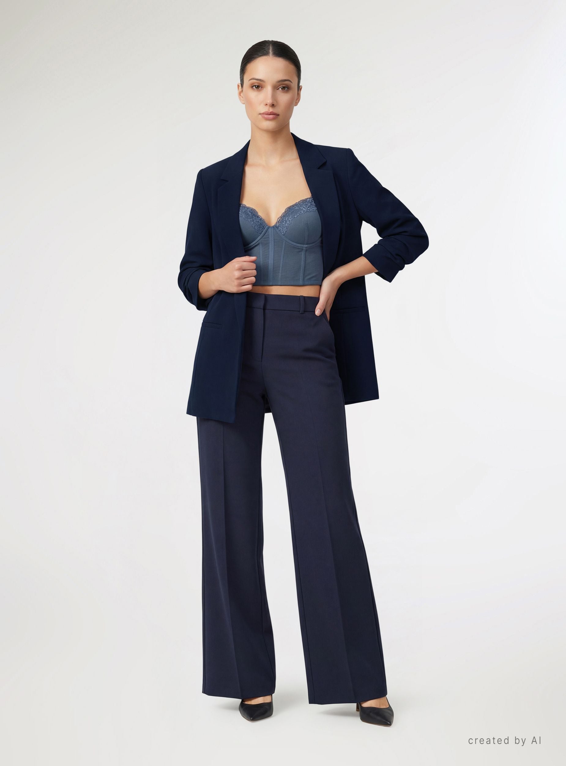 Dámska bunda v jednofarebnom prevedení, s klopami v tvare šípu a dlhým strihom, ktorý opticky predlžuje postavu. Model bez zapínania, s dlhými rukávmi s manžetami a vsadenými vreckami pre jednoduchý vzhľad. Podšitá pre väčšie pohodlie, ponúka pravidelný strih a čisté línie. Ideálna do práce, na večere alebo spoločenské udalosti, dobre sa kombinuje s košeľami, tričkami a džínsami alebo s elegantnými nohavicami pre denný i večerný vzhľad.Detaily