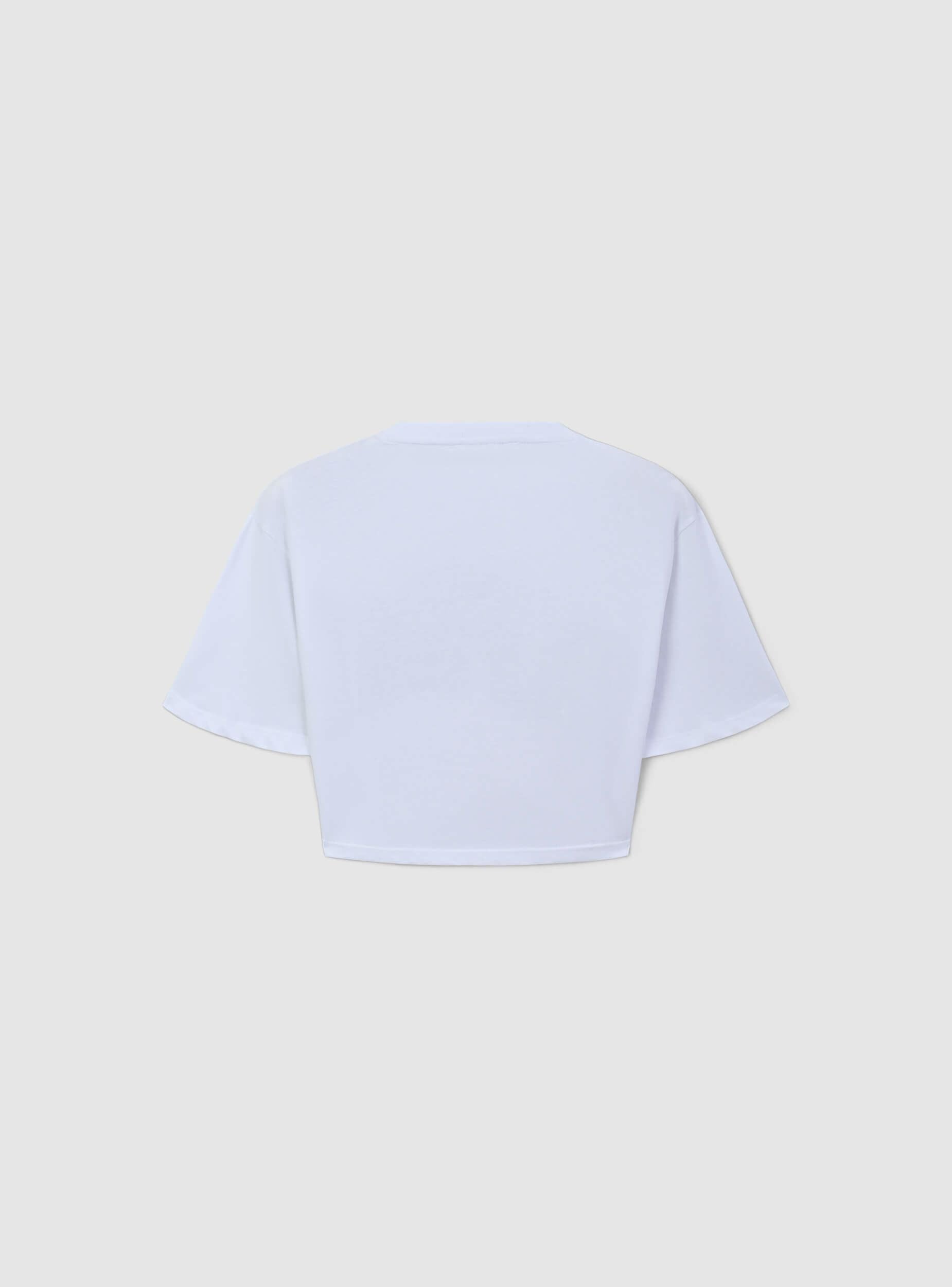 Dámske tričko s krátkym strihom, ideálne pre ležérny a uvoľnený štýl. Voľný strih poskytuje pohodlný a módny vzhľad, ideálny na kombinovanie s vysokými nohavicami alebo šortkami. Okrúhly výstrih a krátke rukávy dotvárajú dizajn, ponúkajúci základný a praktický dotyk. Na prednej strane sa nachádza veľký potlač v štýle college, ktorá evokuje športovú a mestskú atmosféru, ideálnu pre tých, ktorí milujú dynamické kúsky. Toto tričko je perfektné na vytváranie mladistvých a sviežich vzhľadov.Detaily