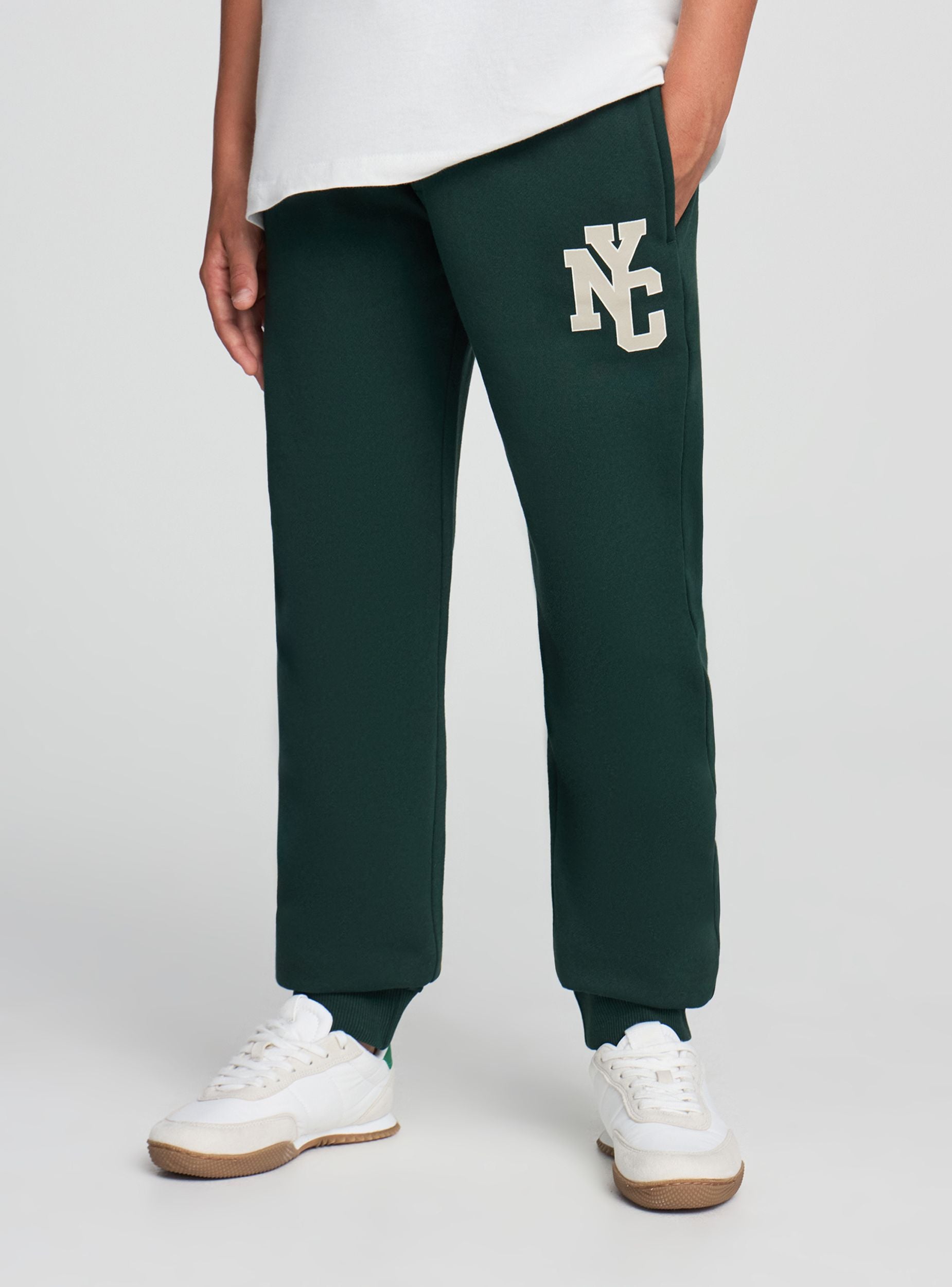 Teplákové nohavice pre deti, ideálne na zimu. Majú dekoratívny potlač na nohe, regulovateľnú šnúrku v páse a manžety na členkoch pre pohodlné nosenie. Bočné vrecká pridávajú praktickosť. Perfektné do školy, na hranie a vo voľnom čase.Detaily