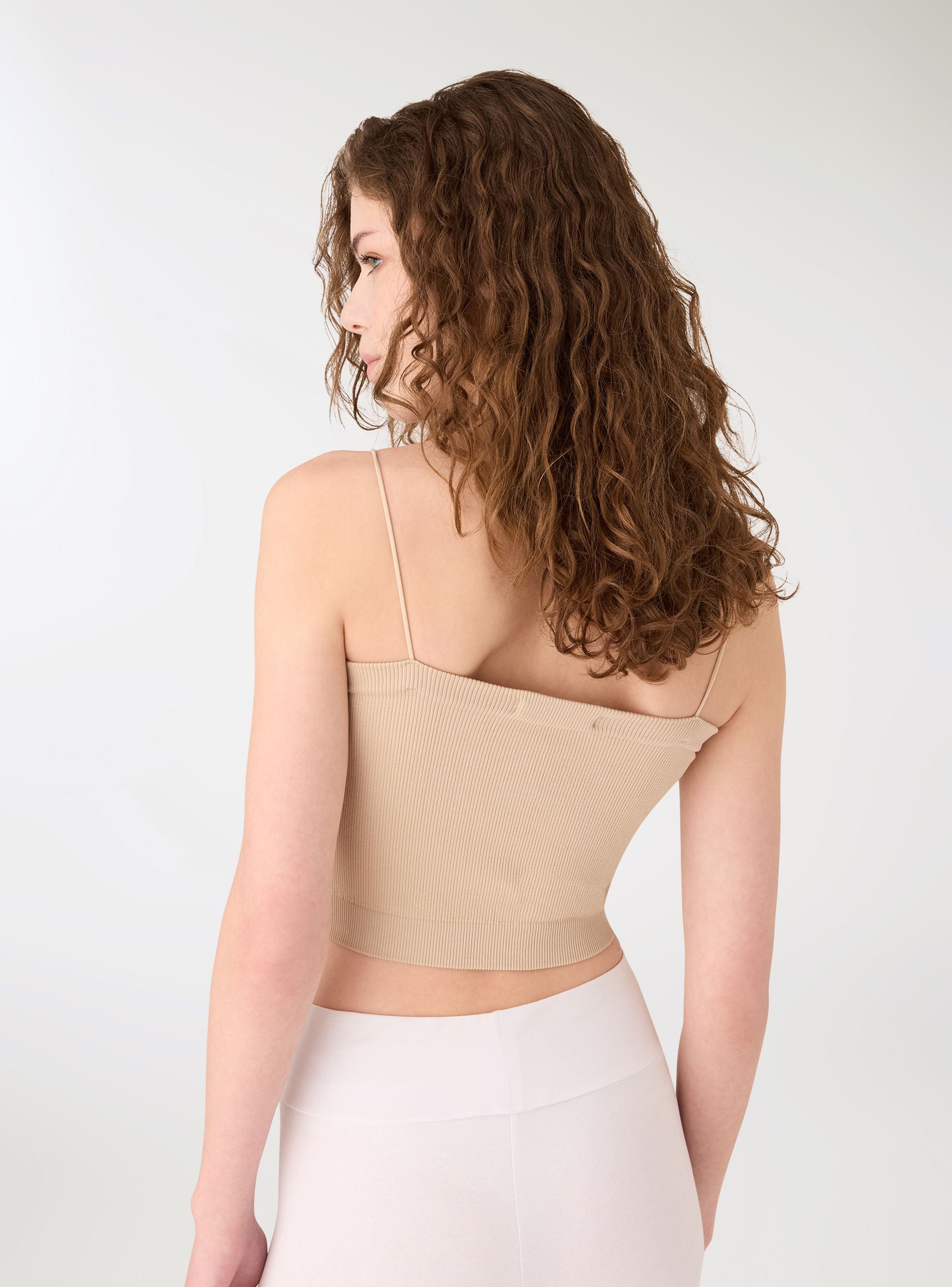 Dámsky jednobarevný top s tenkými ramienkami, ideálny ako základ pre vrstvené outfity alebo letné oblečenie. Priliehavý strih zvýrazňuje siluetu, rebrovaná štruktúra a elastické lemy zabezpečujú pohodlné nosenie. Perfektný pod rozopnuté košele, blejzre alebo kardigány, ľahko sa kombinuje s džínsami s vysokým pásom, midi sukňami alebo šortkami pre všestranný štýl od rána do večera.Detaily