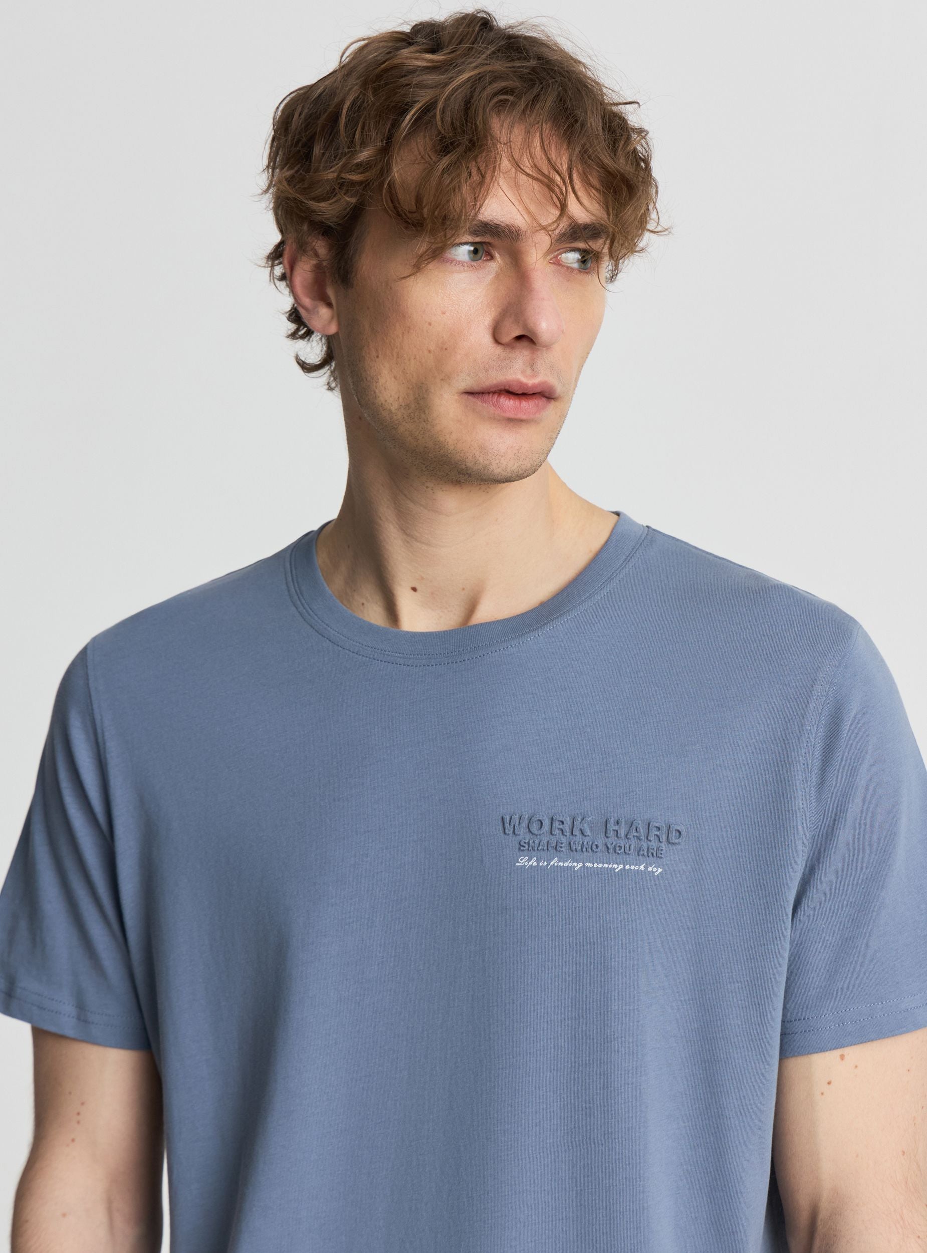 Pánske tričko s okrúhlym výstrihom a krátkymi rukávmi, ozdobené 3D potlačou umiestnenou na hrudi. Jednofarebný dizajn ho robí ľahko kombinovateľným s džínsami, chinos nohavicami alebo bermudami na voľný čas alebo mestský štýl. Vyrobené z ťažkej bavlnenej džersejovej látky. Regular strih a čisté dokončenie s olemovanými lemy. Univerzálny kúsok na každý deň, ideálny pod rozopnutú košeľu alebo mikinu.Detaily