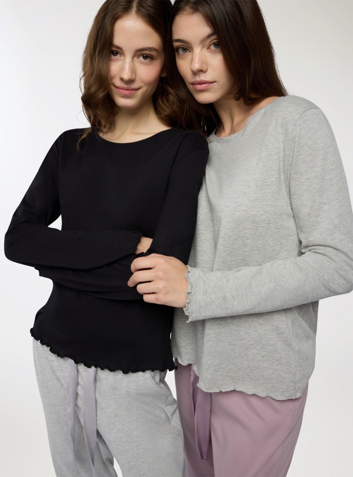 Balenie obsahuje 2 dámske tričká s dlhým rukávom, ideálne pre ležérny a univerzálny vzhľad. Perfektné na kombinovanie s džínsami alebo nohavicami pre každodenný outfit. Pohodlný strih a jednofarebný dizajn ich robia vhodnými na rôzne príležitosti, od práce po voľný čas. Okrúhly výstrih a vlnitý lem pridávajú nenápadný, ale elegantný štýlový detail.