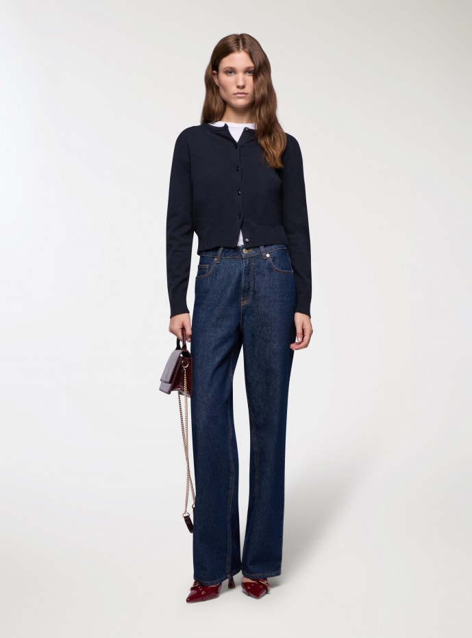Dámsky sveter s dizajnom kardigánu, vybavený predným zapínaním na gombíky. Má priliehavý strih, ideálny na kombinovanie so sukňami alebo nohavicami s vysokým pásom. Perfektný na neformálne príležitosti. Dlhé rukávy a okrúhly výstrih dodávajú kúsku jednoduchý a všestranný vzhľad.